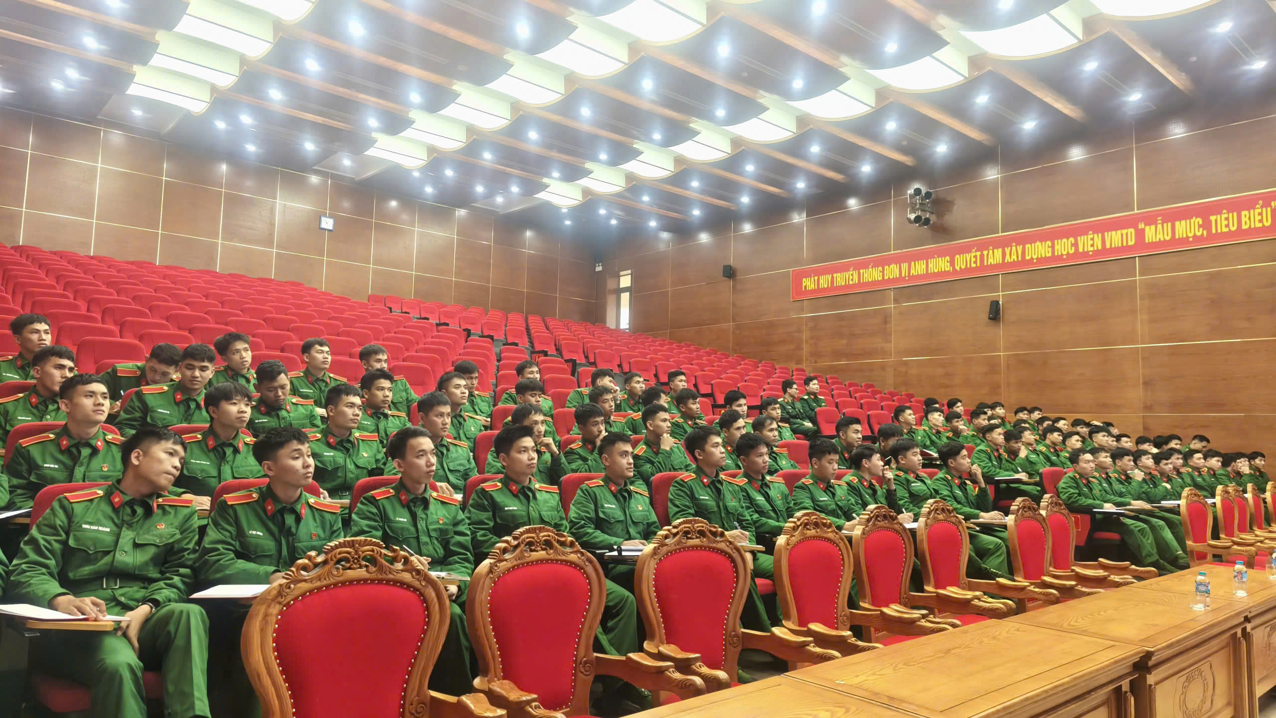 Học viên chuyên ngành chỉ huy tham mưu Tiểu đoàn 3 dự hội nghị hướng dẫn trước khi đi thực tập cuối khóa.