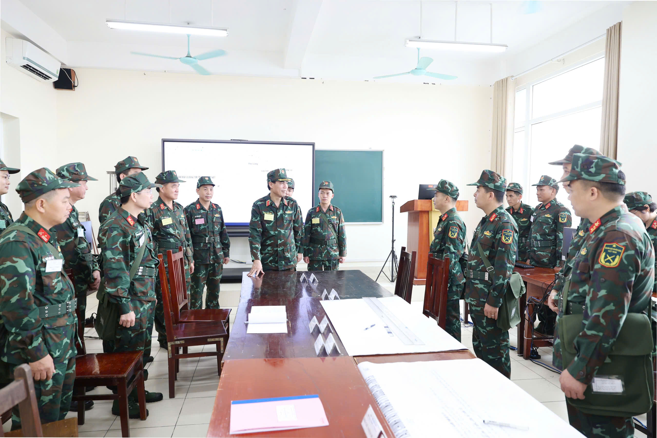 Ban Chỉ đạo cũng truyền đạt những kinh nghiệm trong quá trình thực hành diễn tập, chỉ ra những nội dung cần lưu ý để các khung diễn tập bảo đảm chất lượng, tiến độ, cũng như chấp hành nghiêm các quy định, đặc biệt là quy định về bảo đảm bí mật, an toàn thông tin trong diễn tập. Ngoài kiểm tra, Ban Chỉ đạo cũng đồng thời động viên học viên khắc phục điều kiện khó khăn, xác định tốt nhiệm vụ, phấn đấu hoàn thành nhiệm vụ diễn tập. Đây không chỉ đơn thuần là một hình thức học tập, mà cần phải xác định điều kiện, hoàn cảnh thực tế trong tình huống chiến đấu để vận dụng kiến thức, kỹ năng đã được trang bị nhằm hoàn thành tốt chức trách, nhiệm vụ được giao trong khung.