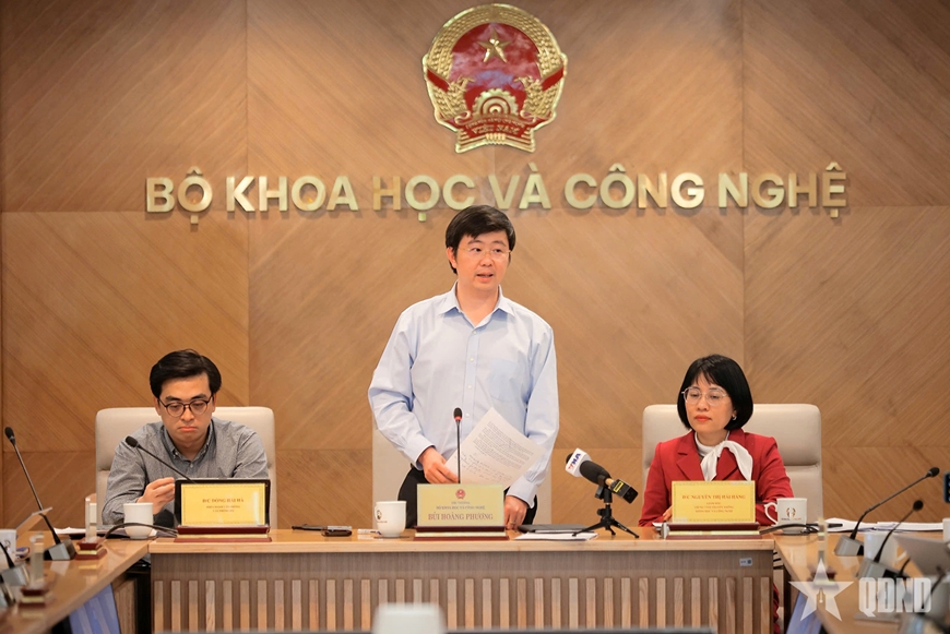 | Thứ trưởng Bộ KH&CN Bùi Hoàng Phương chủ trì buổi họp báo. |