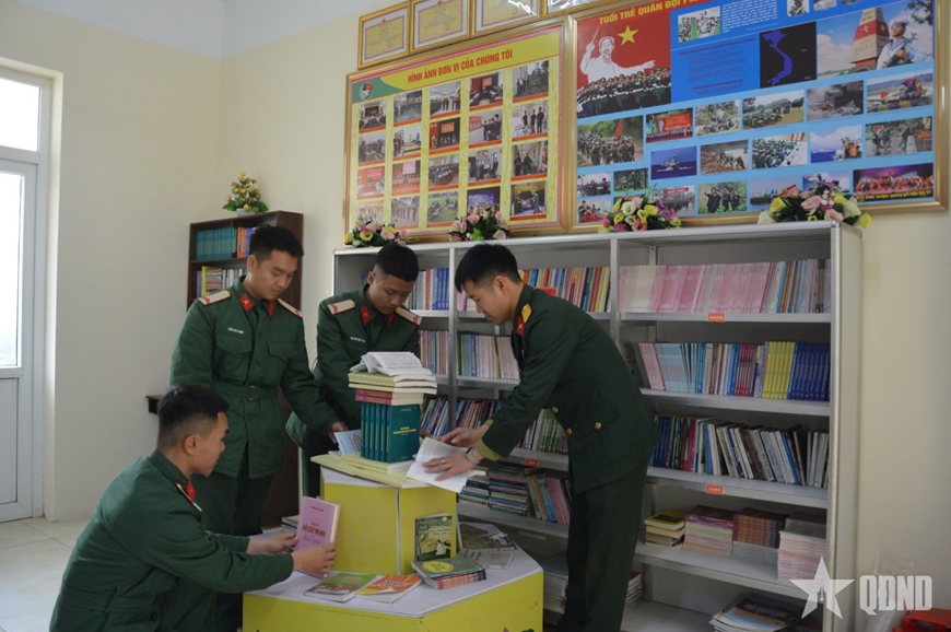 Cán bộ, chiến sĩ Trung đoàn 833 (Bộ CHQS tỉnh Bắc Ninh) củng cố hệ thống phòng đọc của đơn vị. |