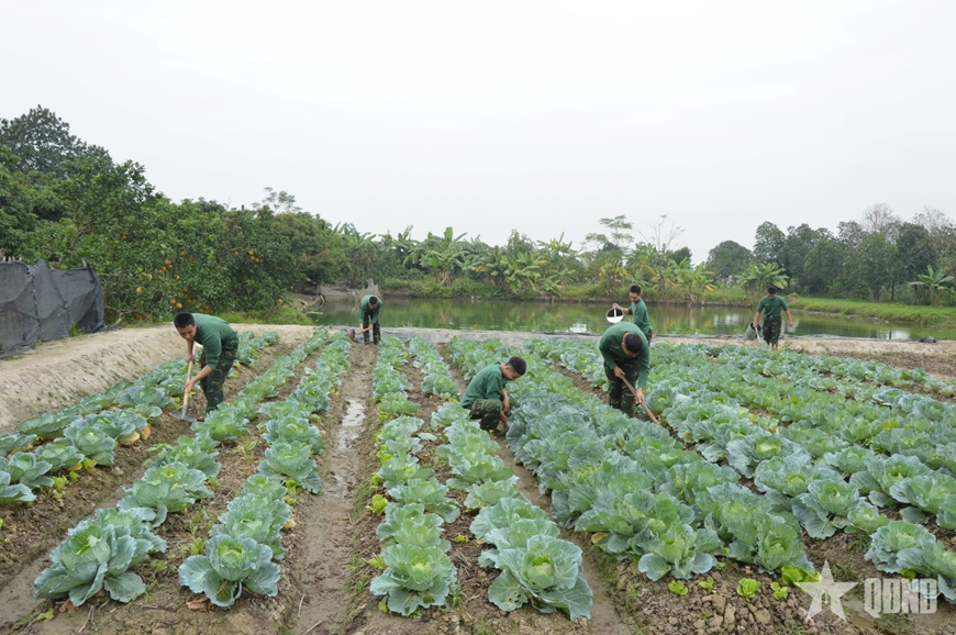 Khi đến khu tăng gia của đơn vị, chứng kiến những luống rau vuông vắn, tiếng cuốc xới, tiếng cười nói rộn vang; vườn bắp cải, rau cần, giàn đậu đũa đều xanh mướt, chúng tôi rất ấn tượng. Hạ sĩ Nguyễn Minh Hiếu và các chiến sĩ của Trung đội 2 (Đại đội 1, Tiểu đoàn 1) dừng chăm sóc cho vườn rau và nói: Các loại rau ngắn ngày của chúng em sẽ thu hoạch vào dịp Tết nguyên đán, một số khác dài ngày hơn sẽ bảo đảm chuẩn bị đón chiến sĩ mới. Tất cả các chiến sĩ trẻ trong Trung đội đều thấy rất vui vẻ, háo hức với những sản phẩm tự tay chăm sóc. Quan trọng hơn cả sau những tháng ngày rèn luyện, quân ngũ chính là nơi những chàng trai học cách trưởng thành, sống có trách nhiệm hơn mỗi ngày.