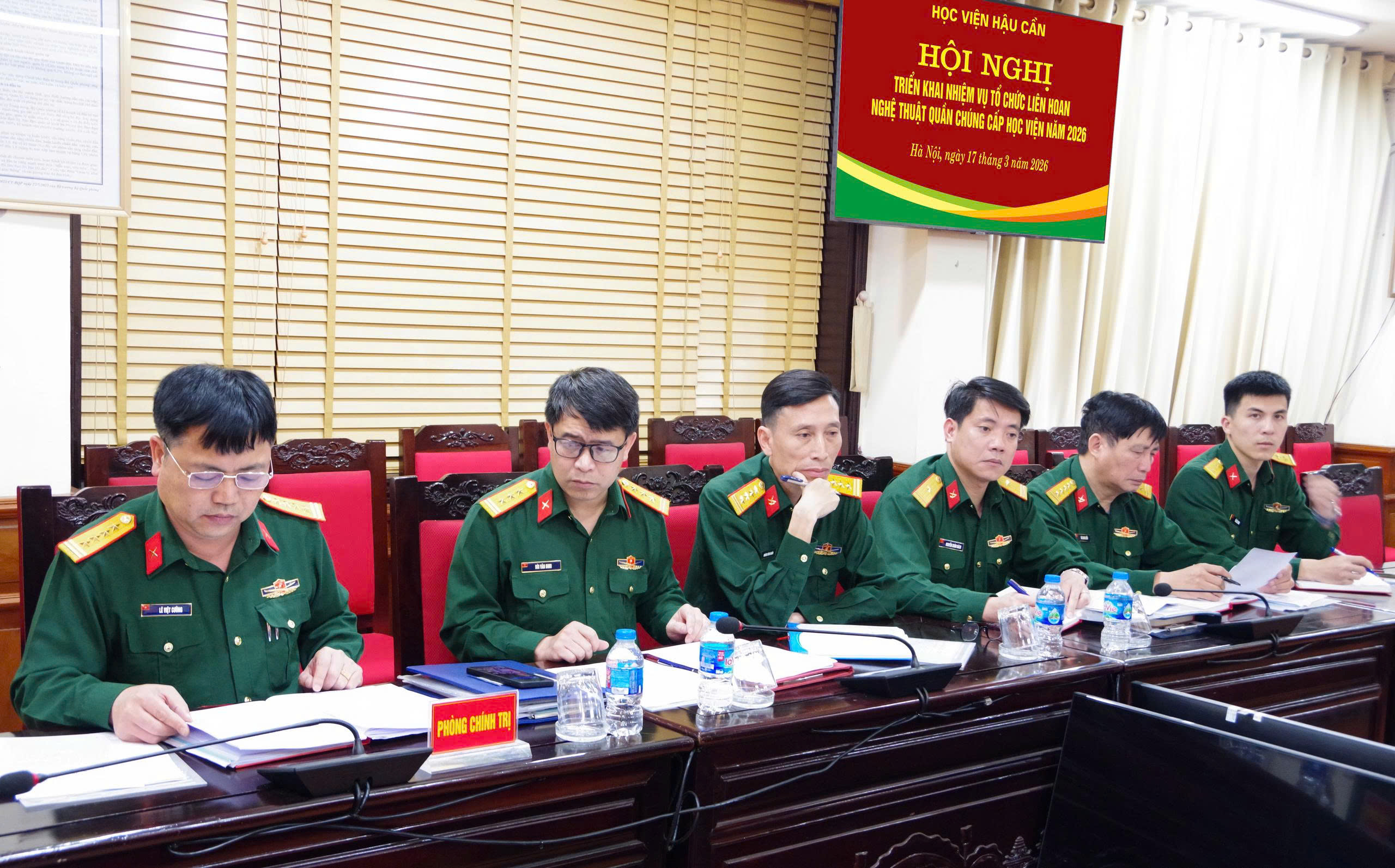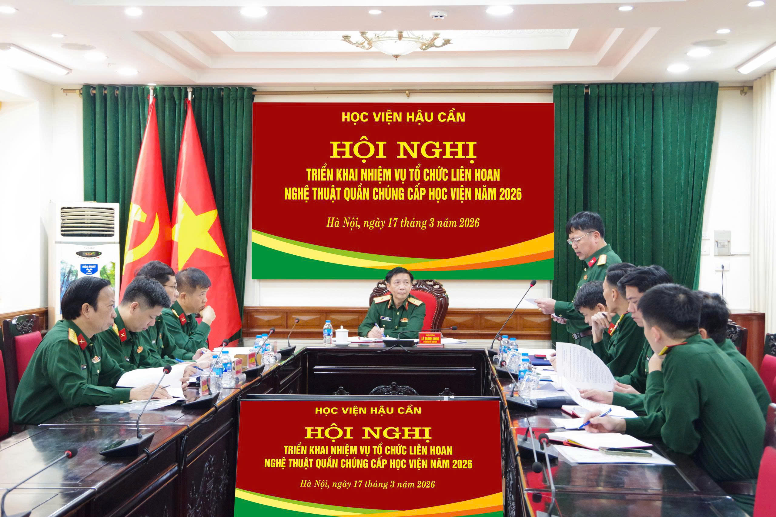 Chiều 17-3, tại Hà Nội, Học viện Hậu cần tổ chức hội nghị triển khai nhiệm vụ Liên hoan nghệ thuật quần chúng cấp Học viện năm 2026. Lê Thành Long, Phó Chính ủy Học viện, Trưởng ban tổ chức liên hoan chủ trì hội nghị. Tham dự hội nghị có các thành viên Ban Tổ chức và đại biểu các cơ quan, đơn vị trong toàn Học viện.