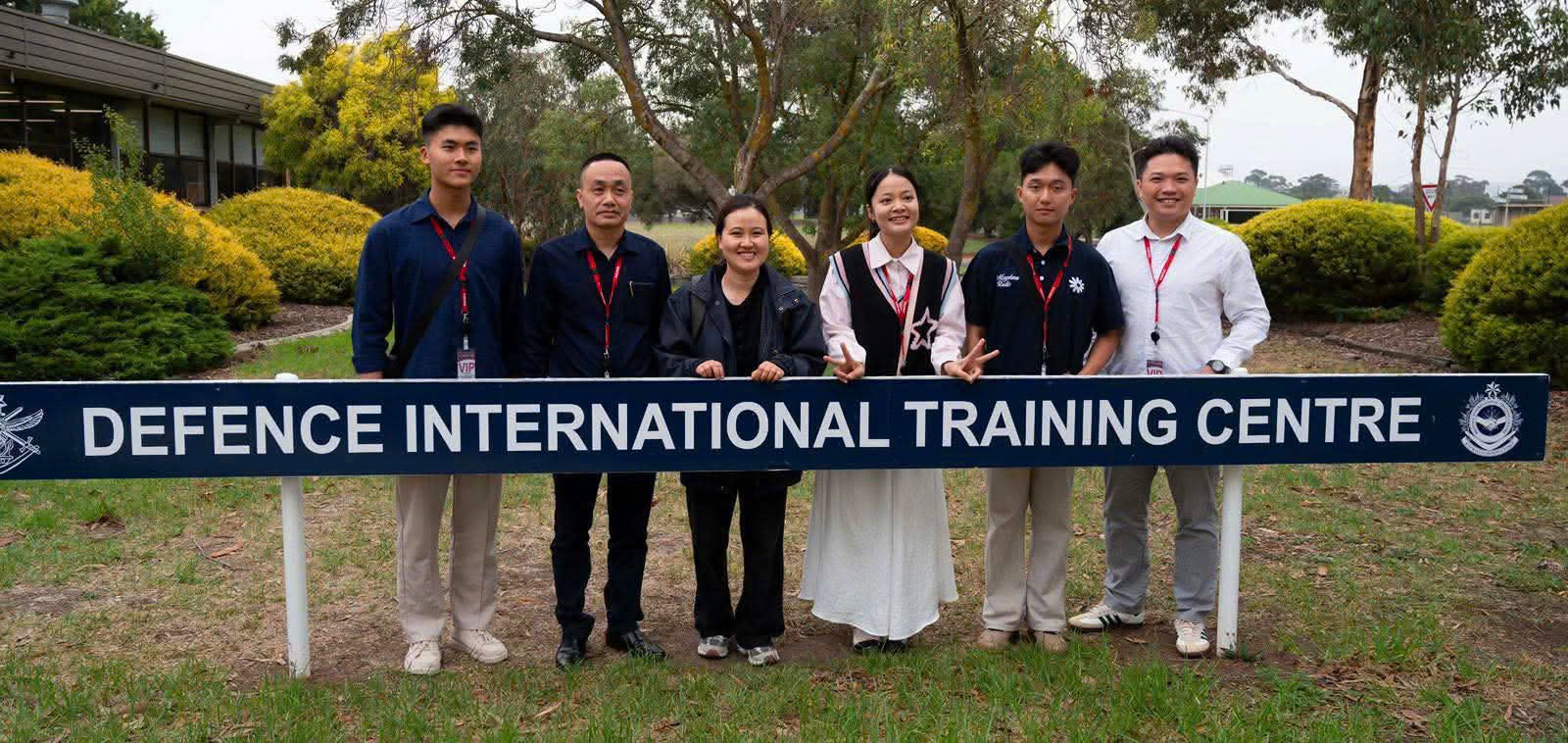 Đoàn công tác chụp ảnh lưu niệm tại Trung tâm Huấn luyện Quốc phòng Quốc tế (DITC) tại Melbourne