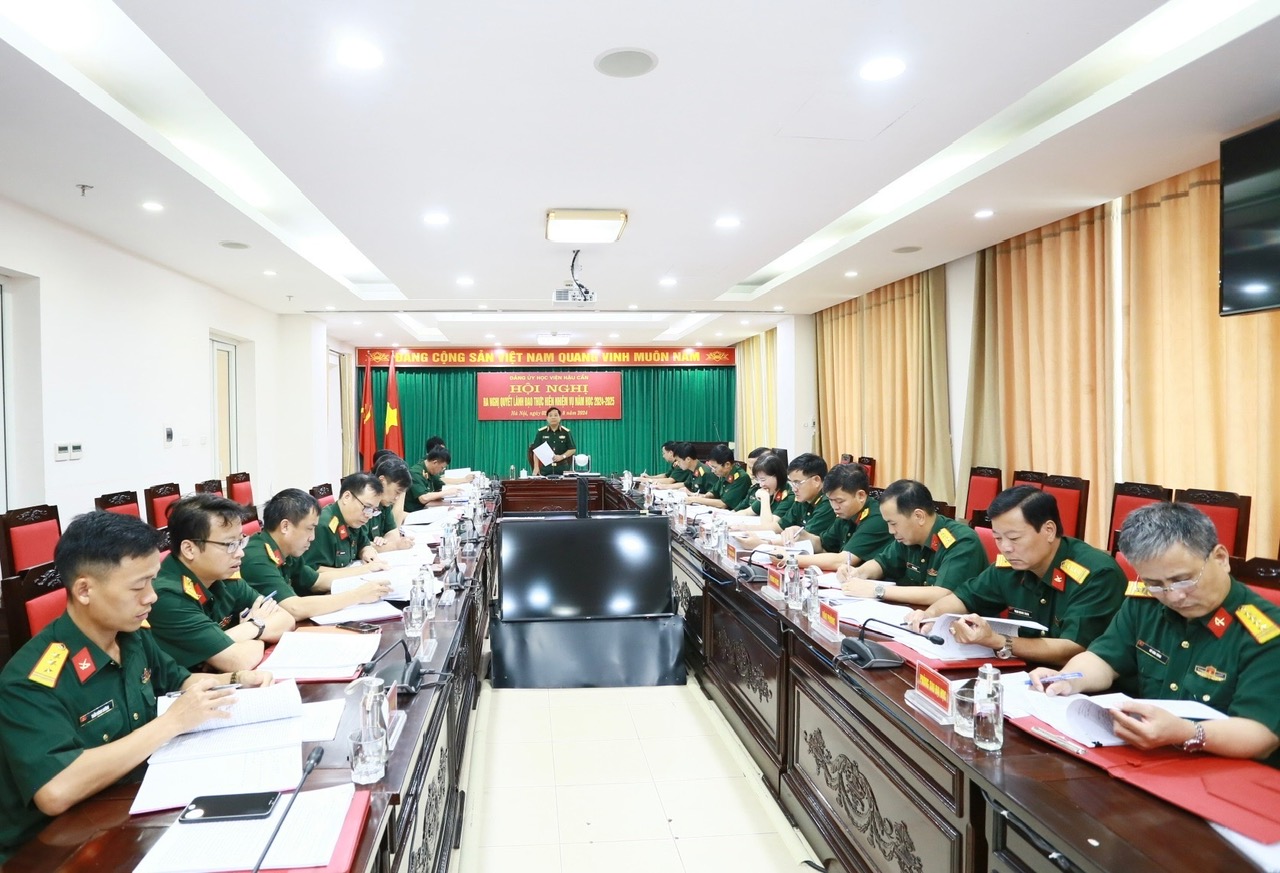 Phát biểu kết luận Hội nghị, Trung tướng Dương Đức Thiện nhấn mạnh: Năm học 2024 - 2025, là thời điểm tiến hành đại hội đảng các cấp tiến tới Đại hội Đảng bộ Quân đội lần thứ XII, Đại hội đại biểu toàn quốc lần thứ XIV của Đảng; nhiệm vụ giáo dục, đào tạo, nghiên cứu khoa học và các mặt công tác khác của Học viện tiếp tục phát triển, đặt ra nhiều yêu cầu mới. Đảng ủy Học viện tập trung quán triệt sâu sắc, triển khai thực hiện nghiêm túc, hiệu quả các nghị quyết, chỉ thị, kết luận, quy chế, quy định, đề án, kế hoạch, hướng dẫn về quân sự, quốc phòng, bảo vệ Tổ quốc. Lãnh đạo, chỉ đạo thực hiện có hiệu quả công tác giáo dục, đào tạo và nghiên cứu khoa học; tích cực đổi mới nội dung, chương trình, hình thức, phương pháp; dạy thực chất, học thực chất, đánh giá thực chất; nâng cao chất lượng giáo dục, đào tạo đáp ứng chuẩn đầu ra, bảo đảm cơ bản, toàn diện, thiết thực, hiệu quả, sát thực tế, nhất là đào tạo đối tượng cán bộ hậu cần, kỹ thuật đáp ứng tốt yêu cầu thực tiễn đặt ra. Giữ vững ổn định chính trị; nâng cao chất lượng xây dựng chính quy, rèn luyện kỷ luật và công tác bảo đảm, phục vụ đáp ứng tốt yêu cầu nhiệm vụ. Tập trung nâng cao năng lực lãnh đạo toàn diện, sức chiến đấu của các cấp ủy, tổ chức đảng; quyết liệt hoàn thành các chỉ tiêu nghị quyết trong năm cuối của nhiệm kỳ; chuẩn bị chu đáo, tổ chức thành công đại hội đảng các cấp tiến tới Đại hội đại biểu Đảng bộ Học viện lần thứ XXIII, Đại hội Đảng bộ Quân đội lần thứ XII, Đại hội Đảng toàn quốc lần thứ XIV. Quyết tâm xây dựng Đảng bộ Học viện trong sạch, vững mạnh tiêu biểu; Học viện vững mạnh toàn diện “Mẫu mực, tiêu biểu”; phấn đấu hoàn thành xuất sắc mọi nhiệm vụ được giao.
