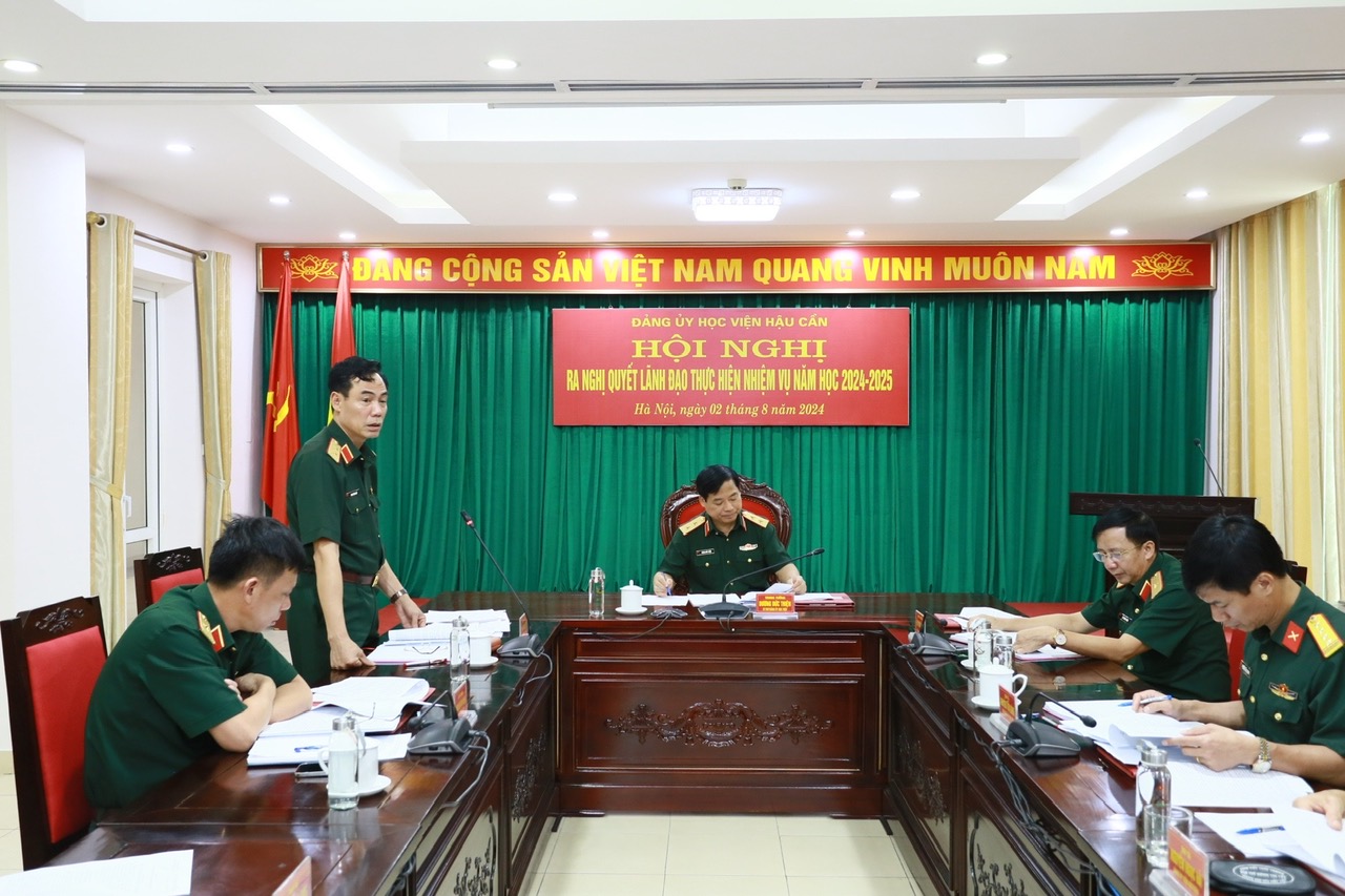 Tại Hội nghị, các đại biểu đã thông qua Quyết định về phân công nhiệm vụ đối với Ủy viên Đảng ủy Học viện Hậu cần khóa XXII, nhiệm kỳ 2020 - 2025; dự thảo Báo cáo tổng kết năm học 2023 - 2024 của Học viện và ra Nghị quyết lãnh đạo thực hiện nhiệm vụ năm học 2024 - 2025.