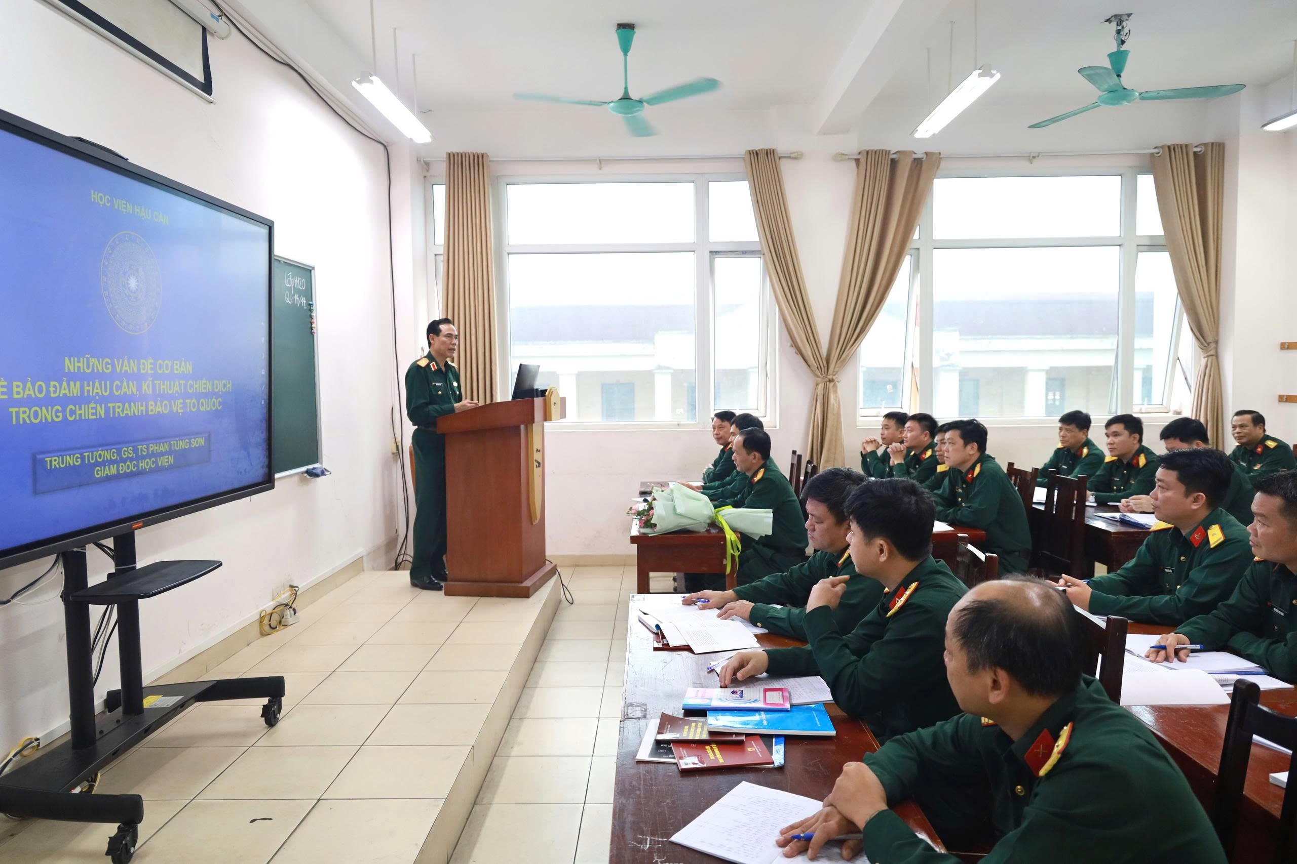 Trung tướng, GS, TS Phan Tùng Sơn giảng bài cho học viên Khoá 20 - Hoàn thiện cán bộ hậu cần cấp trung, sư đoàn.