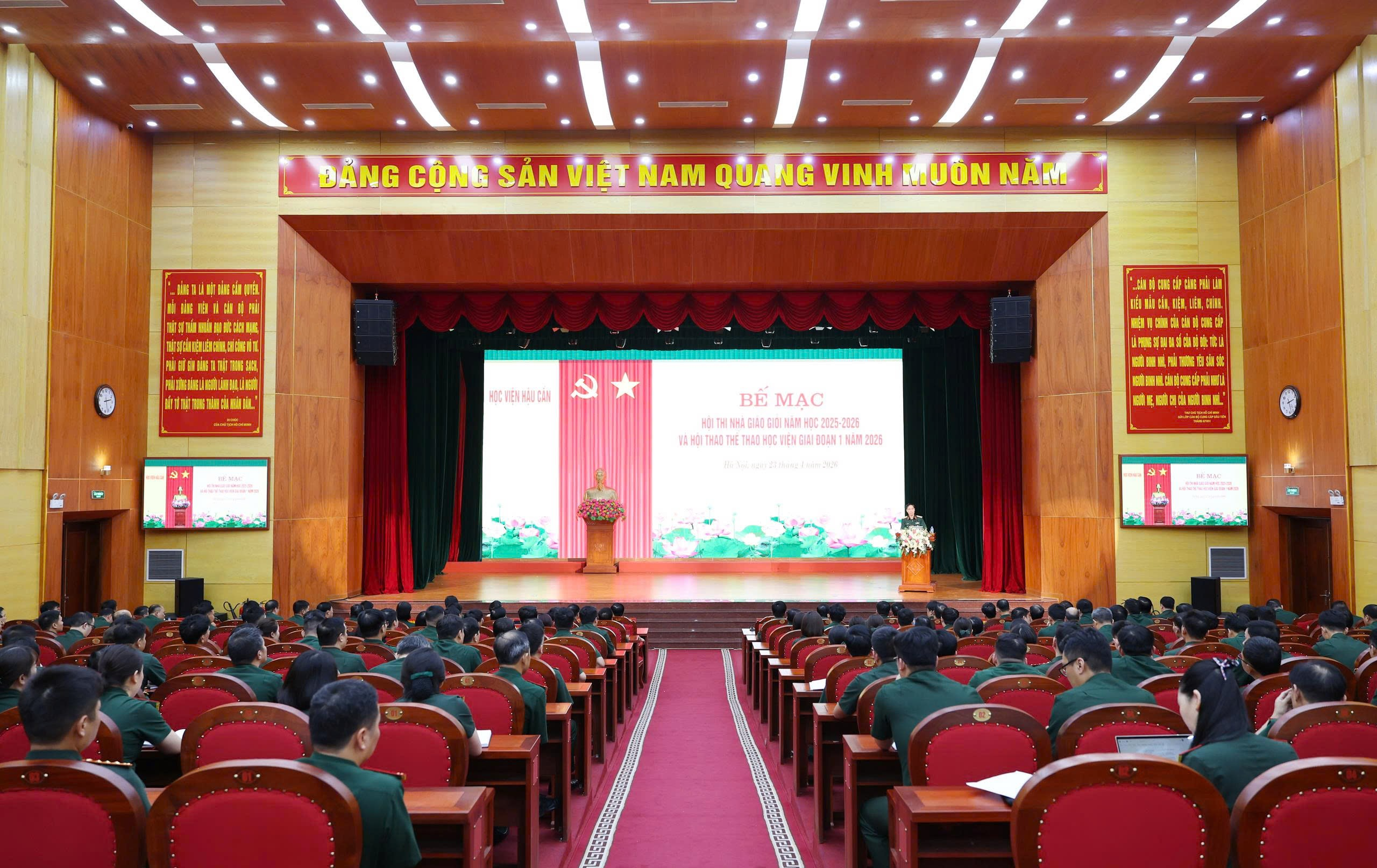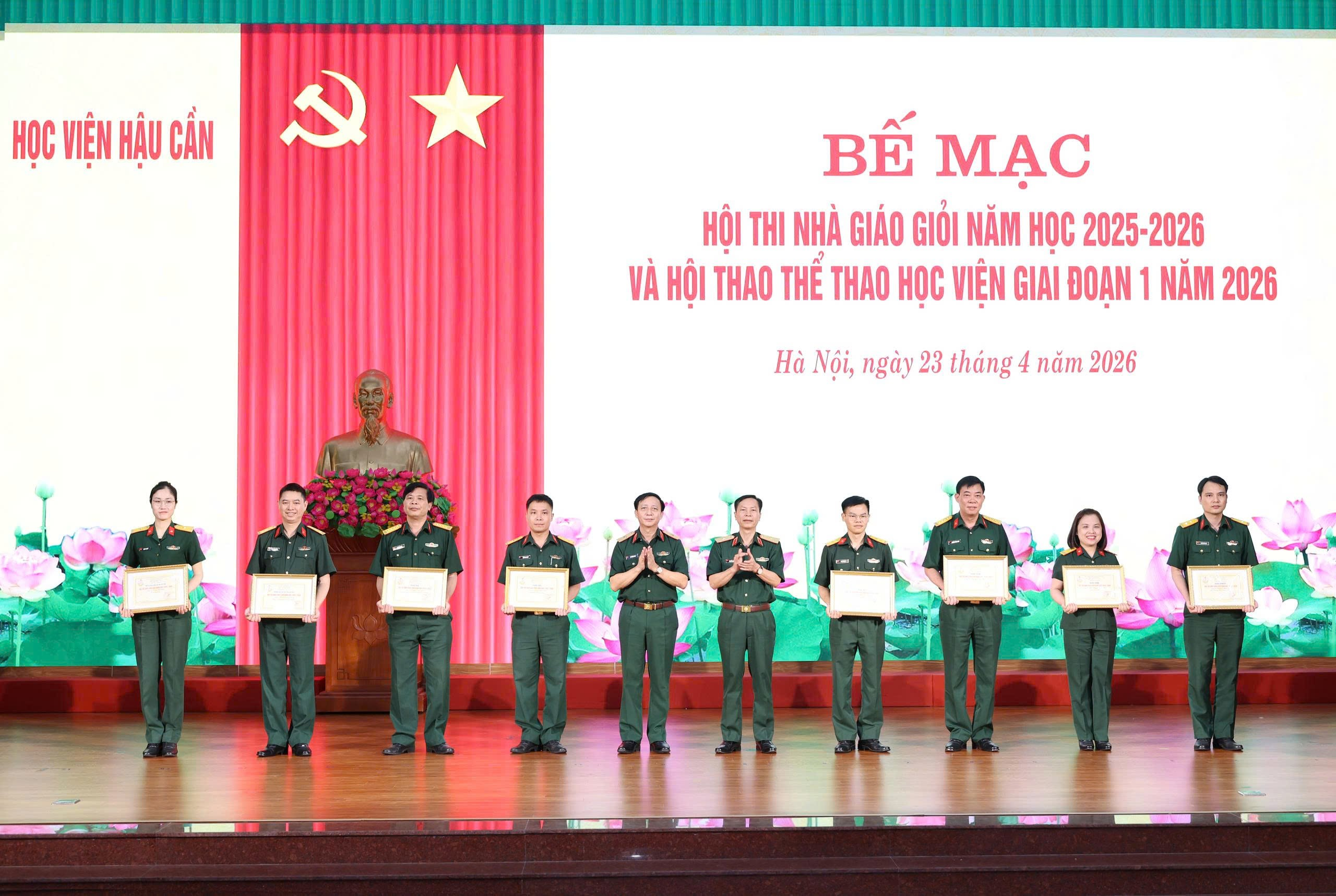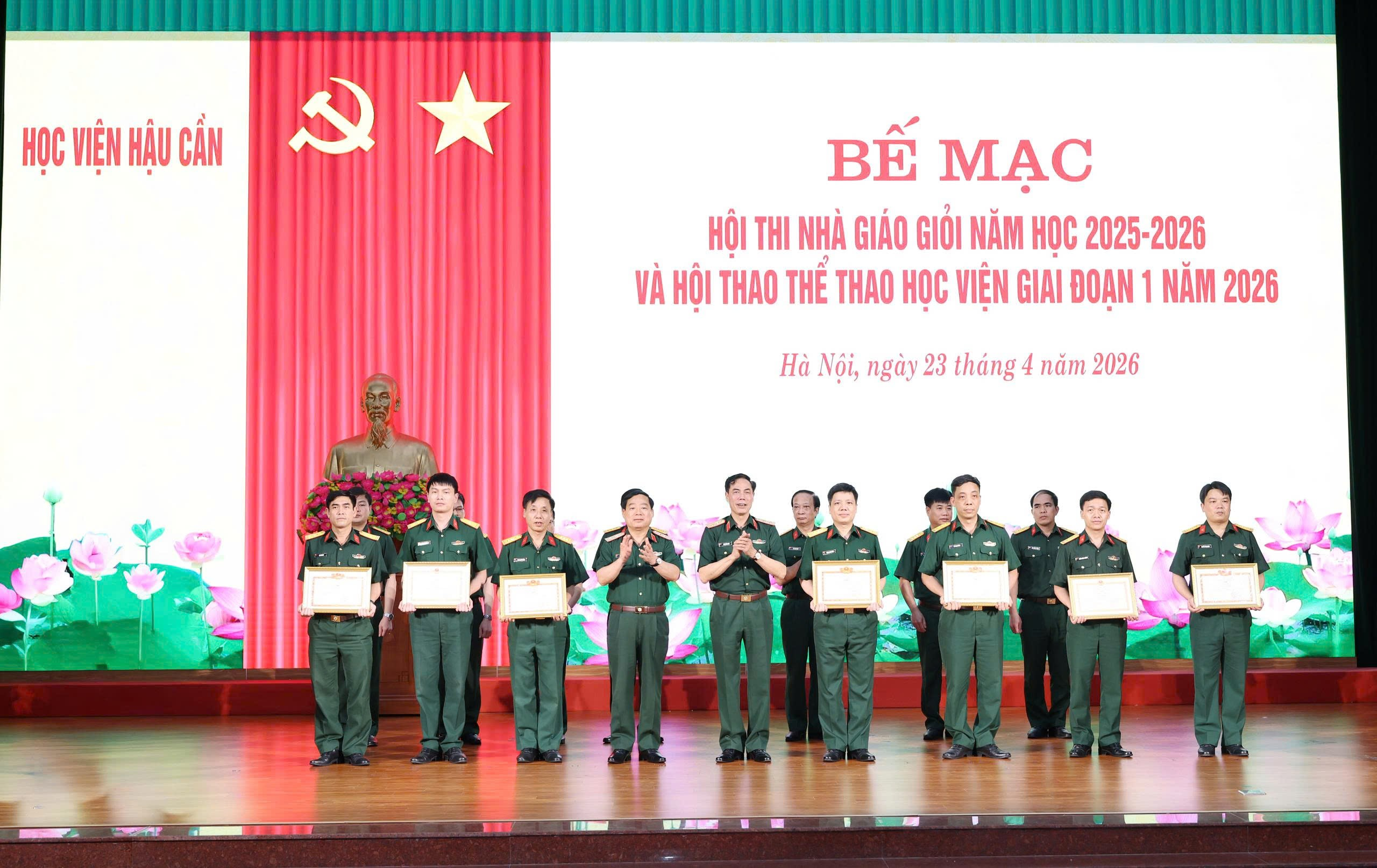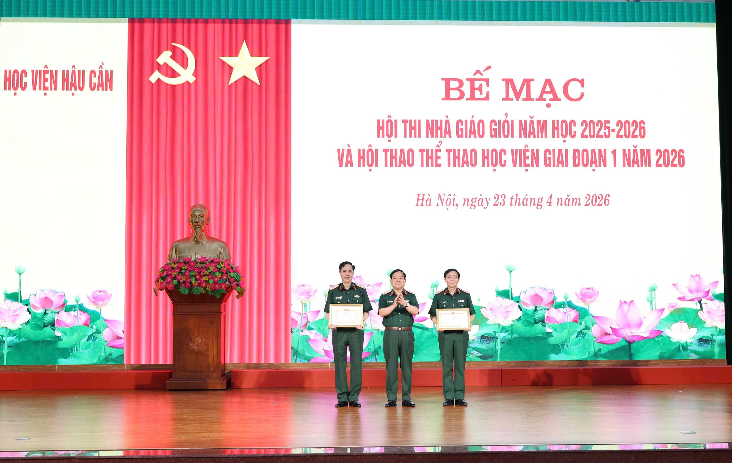 Chiều 23-4, Học viện Hậu cần tổ chức bế mạc Hội thi nhà giáo giỏi năm học 2025-2026 và Hội thao thể thao Học viện giai đoạn 1 năm 2026. Trung tướng, GS, TS Phan Tùng Sơn, Giám đốc Học viện dự và chủ trì bế mạc.