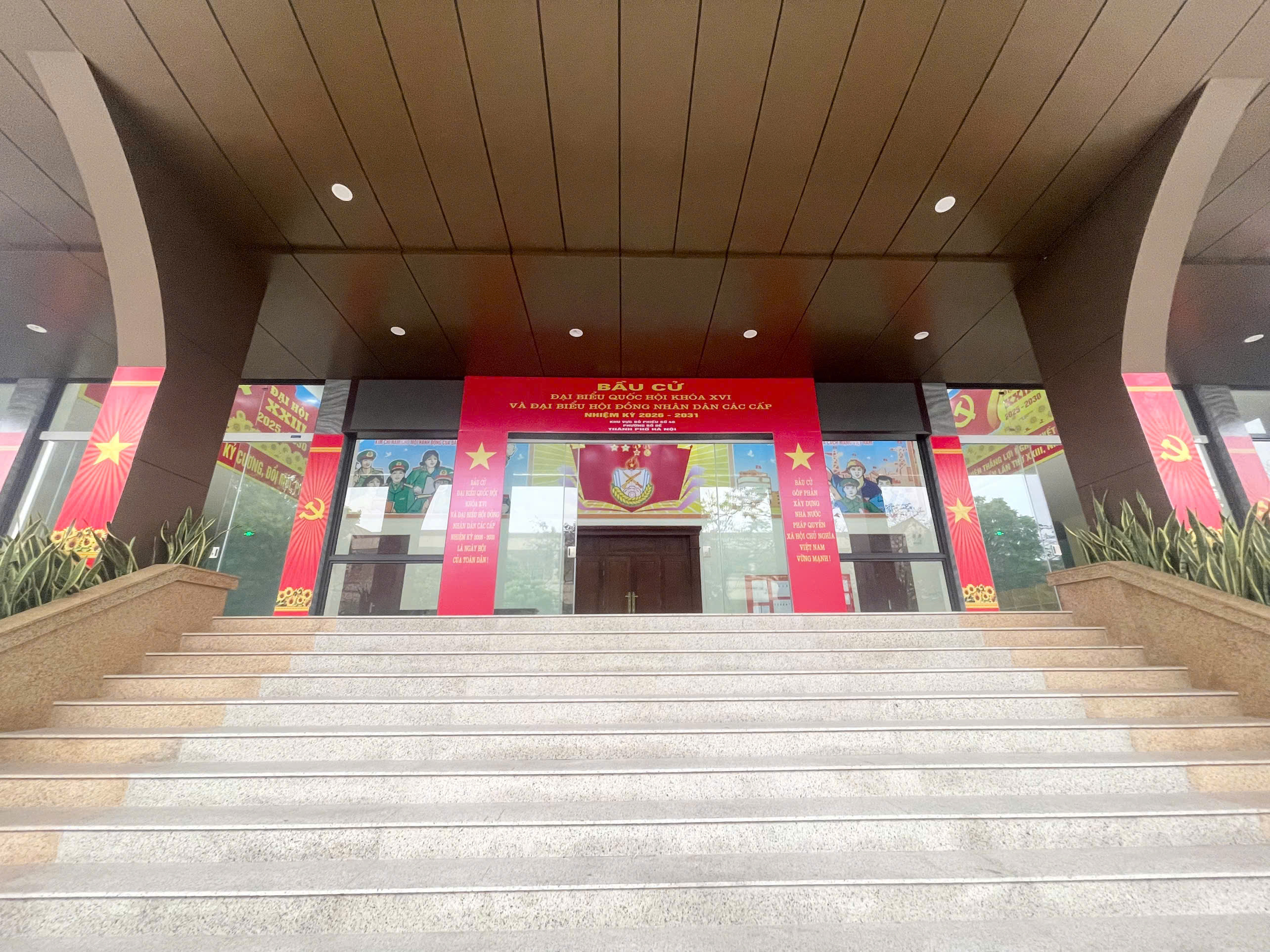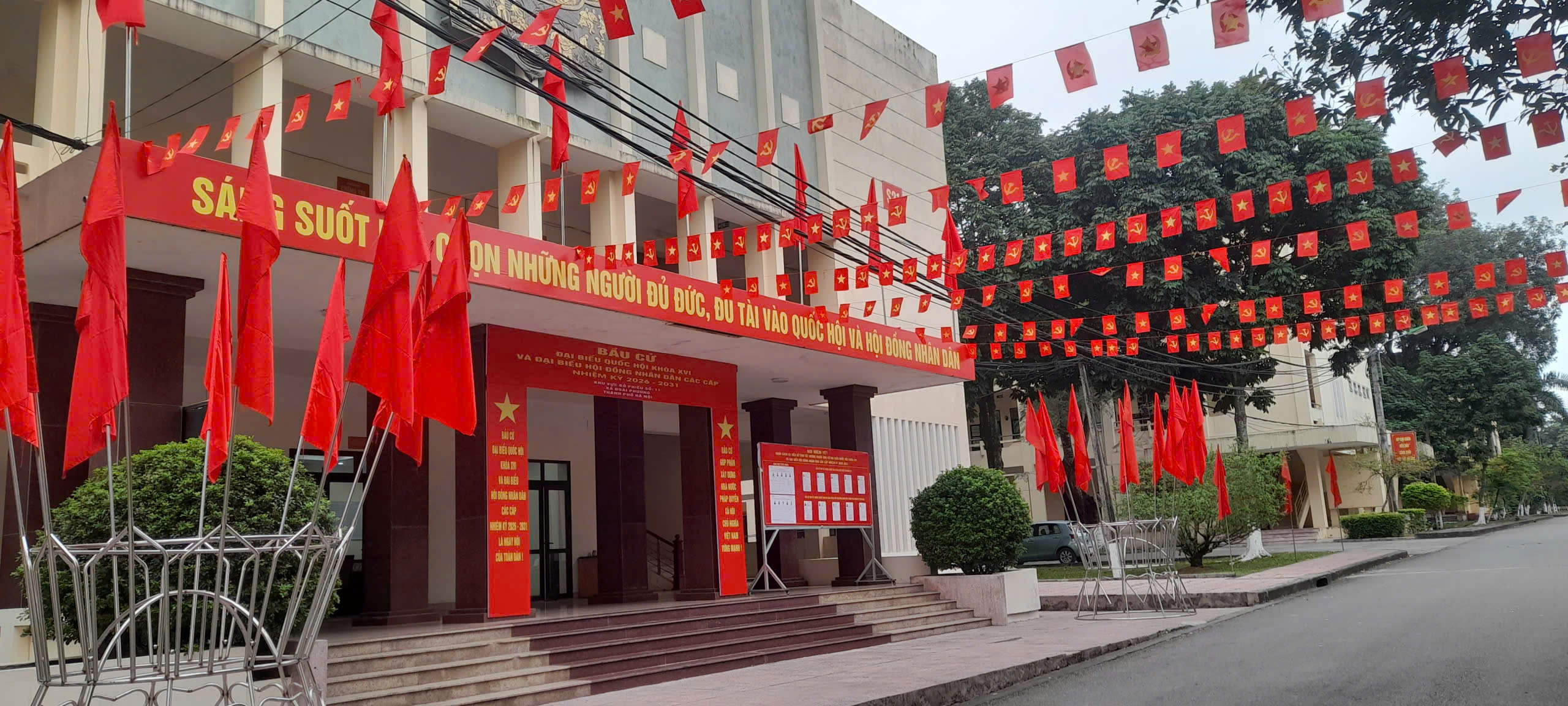 Khu vực 2 Học viện Hậu cần rực rỡ cờ, băng rôn, khẩu hiệu hướng tới ngày bầu cử.