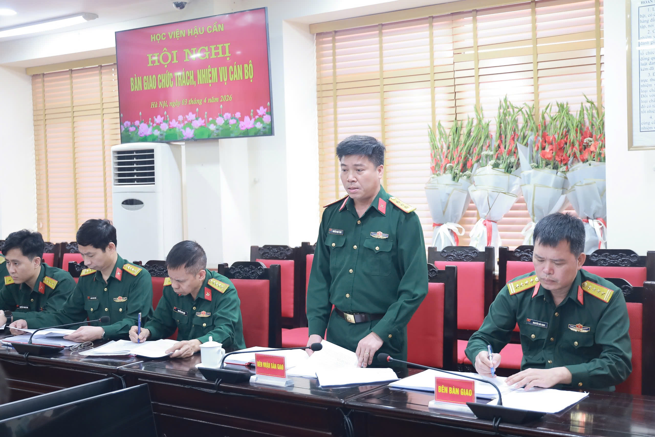 Phát biểu kết luận tại các hội nghị, đồng chí Giám đốc Học viện ghi nhận, biểu dương tinh thần trách nhiệm và những kết quả, đóng góp của các đồng chí được bàn giao trong thời gian qua; đồng thời yêu cầu các đồng chí nhận nhiệm vụ mới nhanh chóng nắm chắc tình hình, phát huy tinh thần trách nhiệm, cùng cấp ủy, chỉ huy đơn vị giữ vững nguyên tắc lãnh đạo của Đảng, đoàn kết, thống nhất, lãnh đạo cơ quan, đơn vị hoàn thành tốt nhiệm vụ được giao.