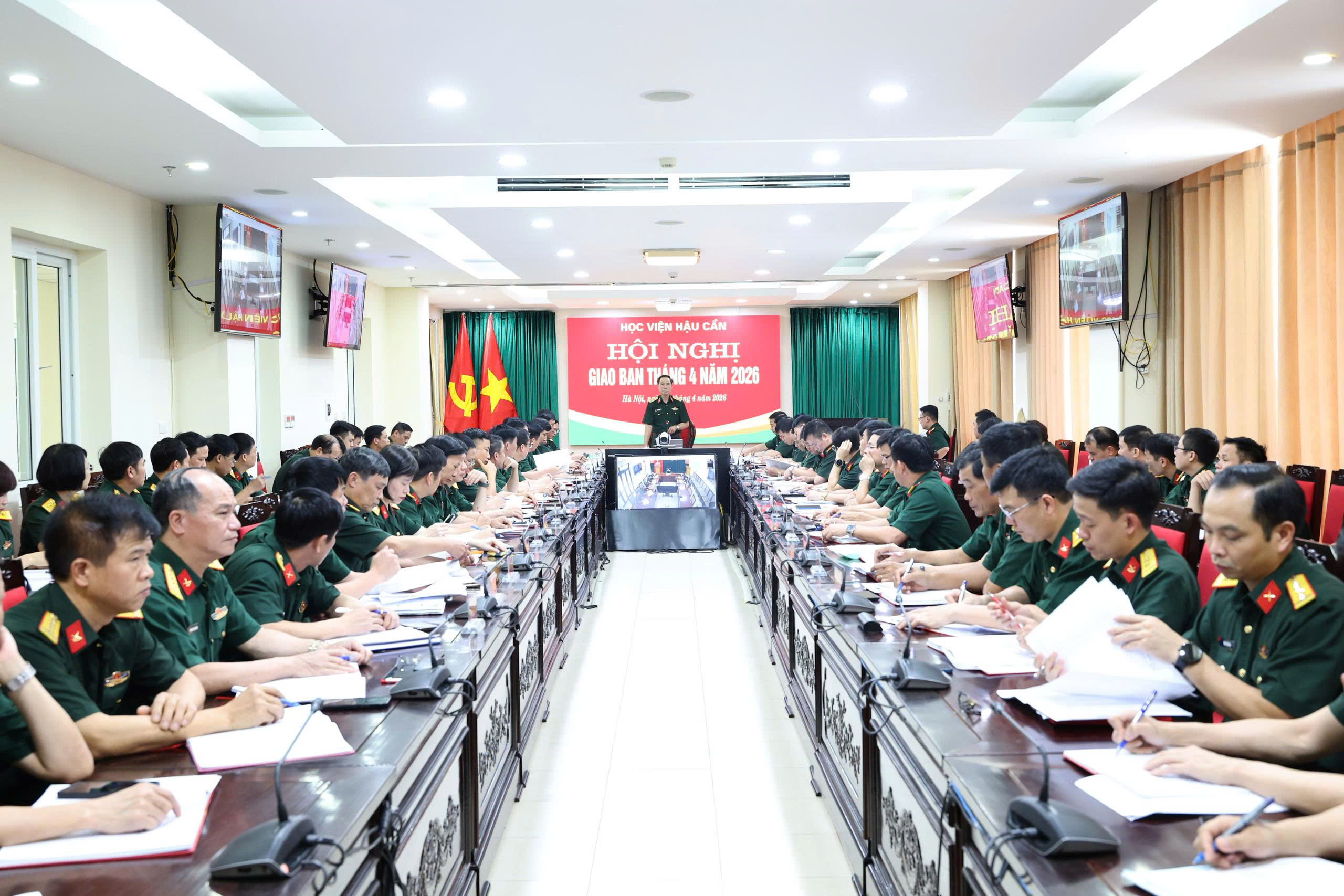 Chiều ngày 28/4, Học viện Hậu cần tổ chức Hội nghị giao ban tháng 4 năm 2026 nhằm đánh giá kết quả thực hiện nhiệm vụ trong tháng và triển khai phương hướng, nhiệm vụ trọng tâm tháng 5. Trung tướng Phan Tùng Sơn, Giám đốc Học viện chủ trì hội nghị. Cùng dự còn có đồng chí Trung tướng Dương Đức Thiện, Bí thư Đảng ủy, Chính ủy Học viện, các đồng chí trong Đảng ủy, Ban Giám đốc Học viện cùng lãnh đạo, chỉ huy các ban, ngành, cơ quan, khoa, đơn vị trong toàn Học viện.