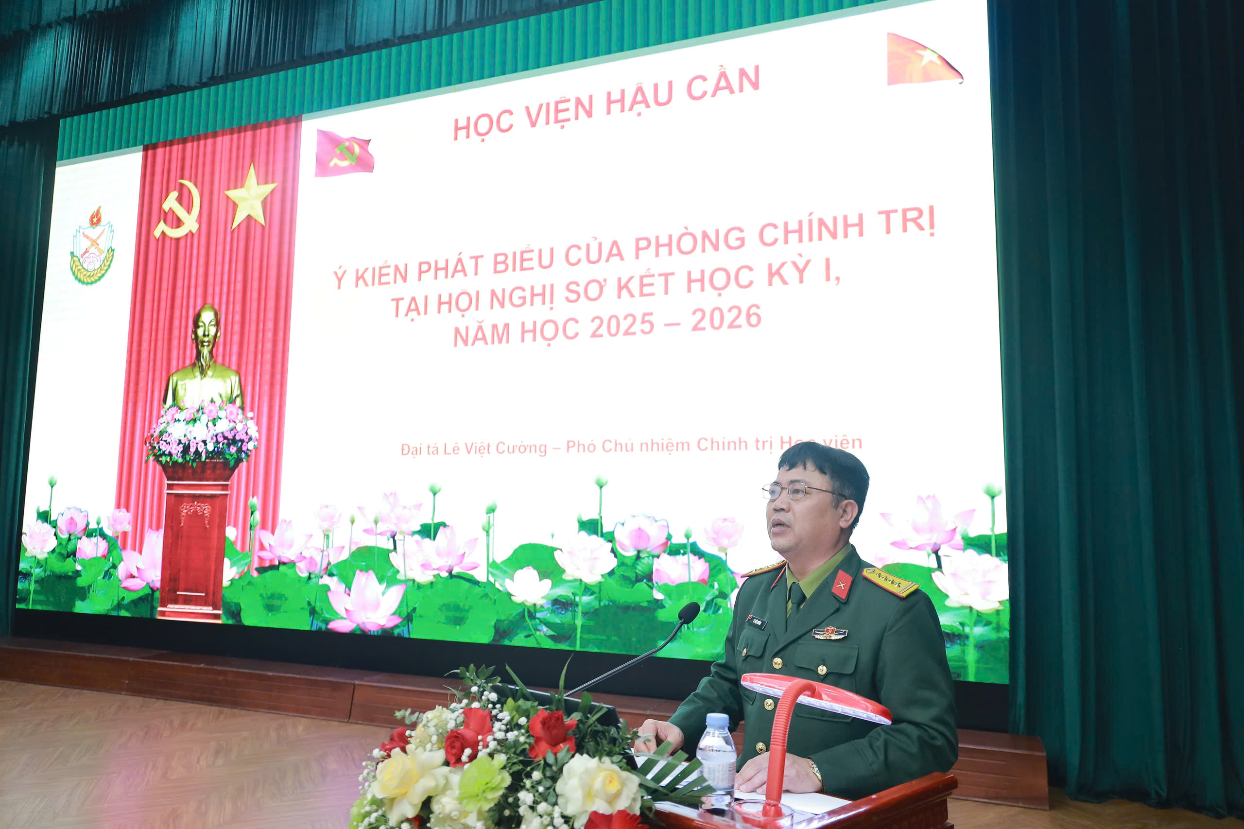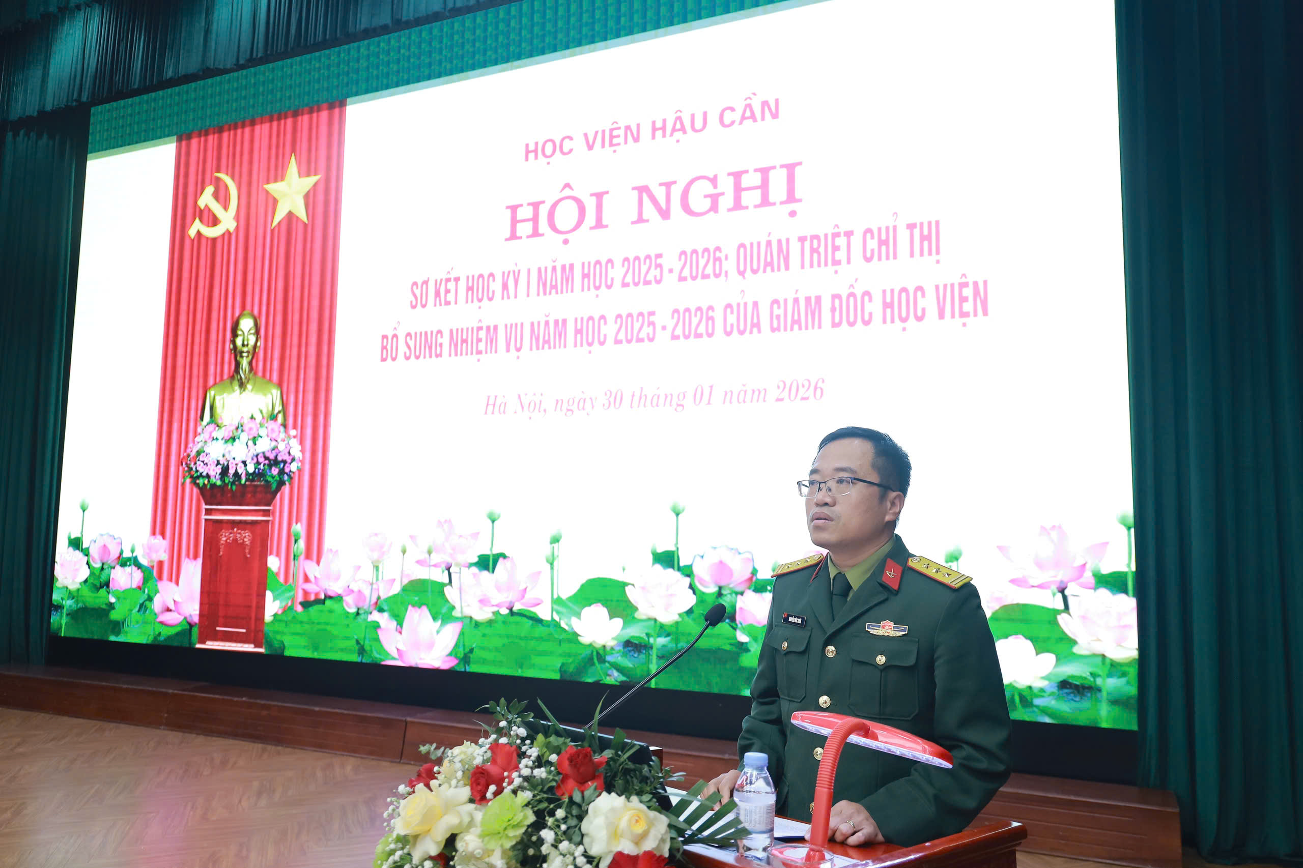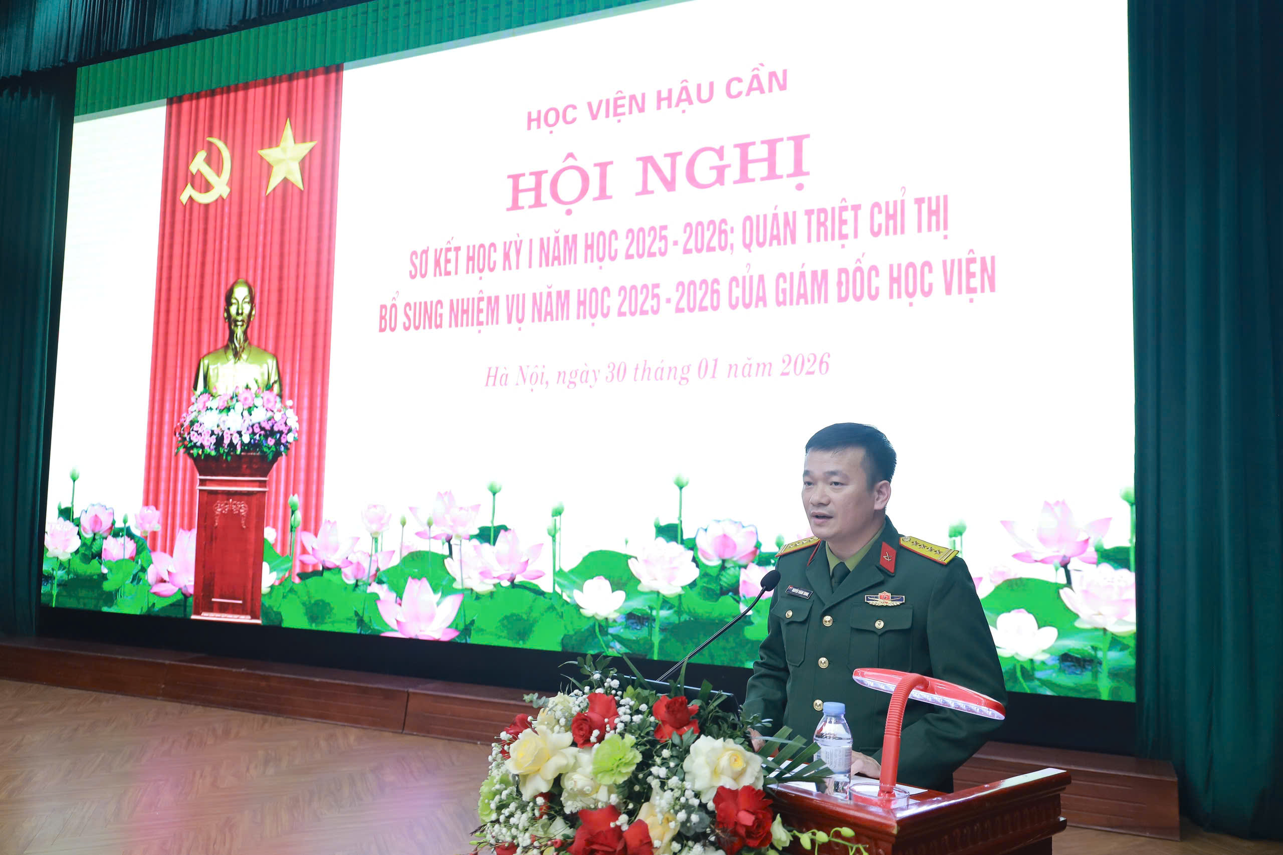 Chiều 30-1, tại Khu vực 2, Học viện Hậu cần (xã Đoài Phương, TP Hà Nội), Học viện Hậu cần tổ chức Hội nghị sơ kết học kỳ I năm học 2025 – 2026. Trung tướng, GS, TS Phan Tùng Sơn, Giám đốc Học viện chủ trì hội nghị. Cùng dự có Trung tướng Dương Đức Thiện, Chính ủy Học viện; các đồng chí trong Thường vụ Đảng ủy, Ban Giám đốc Học viện; đại biểu chỉ huy các cơ quan, khoa, đơn vị cùng đông đủ cán bộ, giảng viên, học viên, sinh viên toàn Học viện.