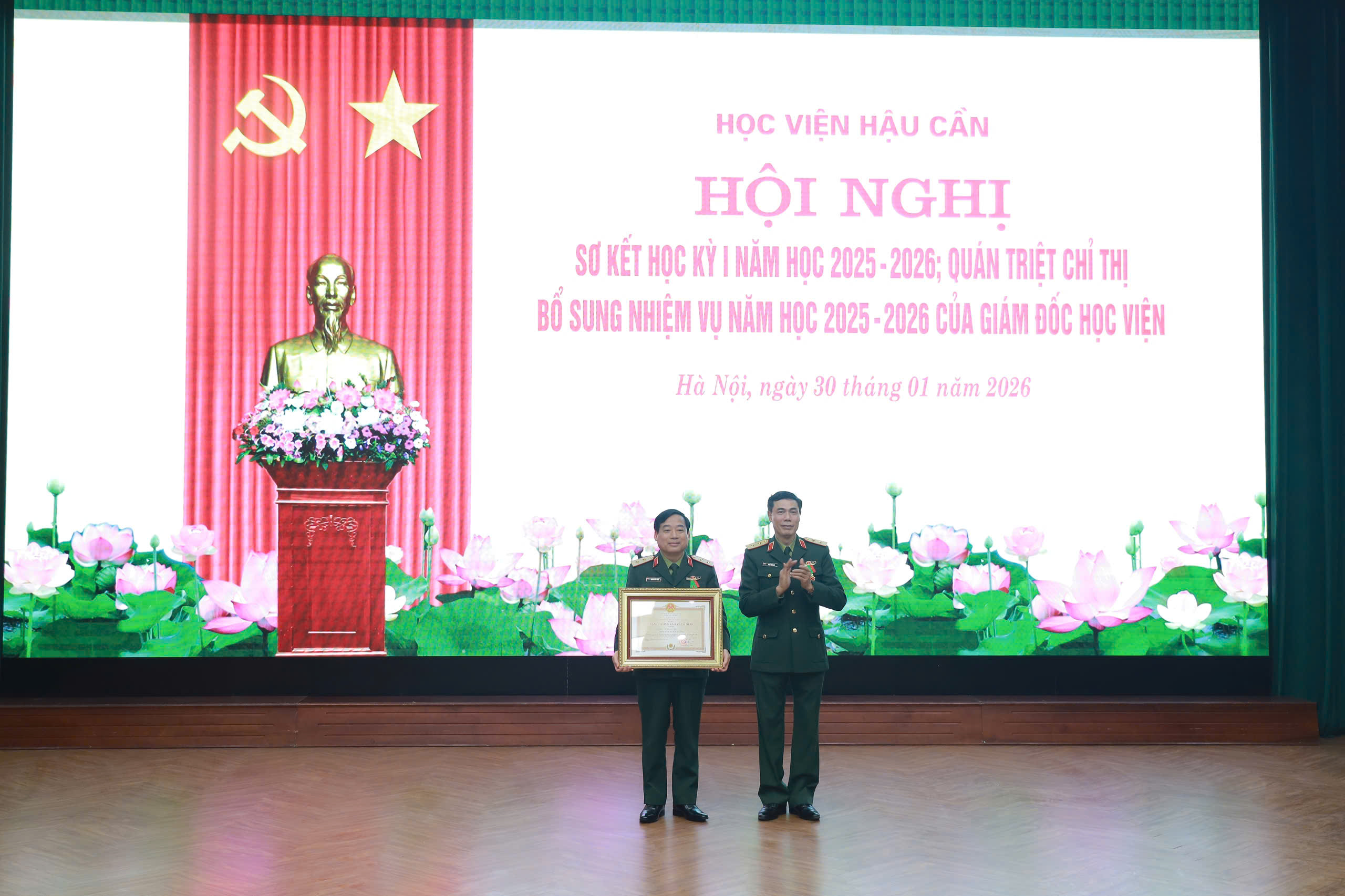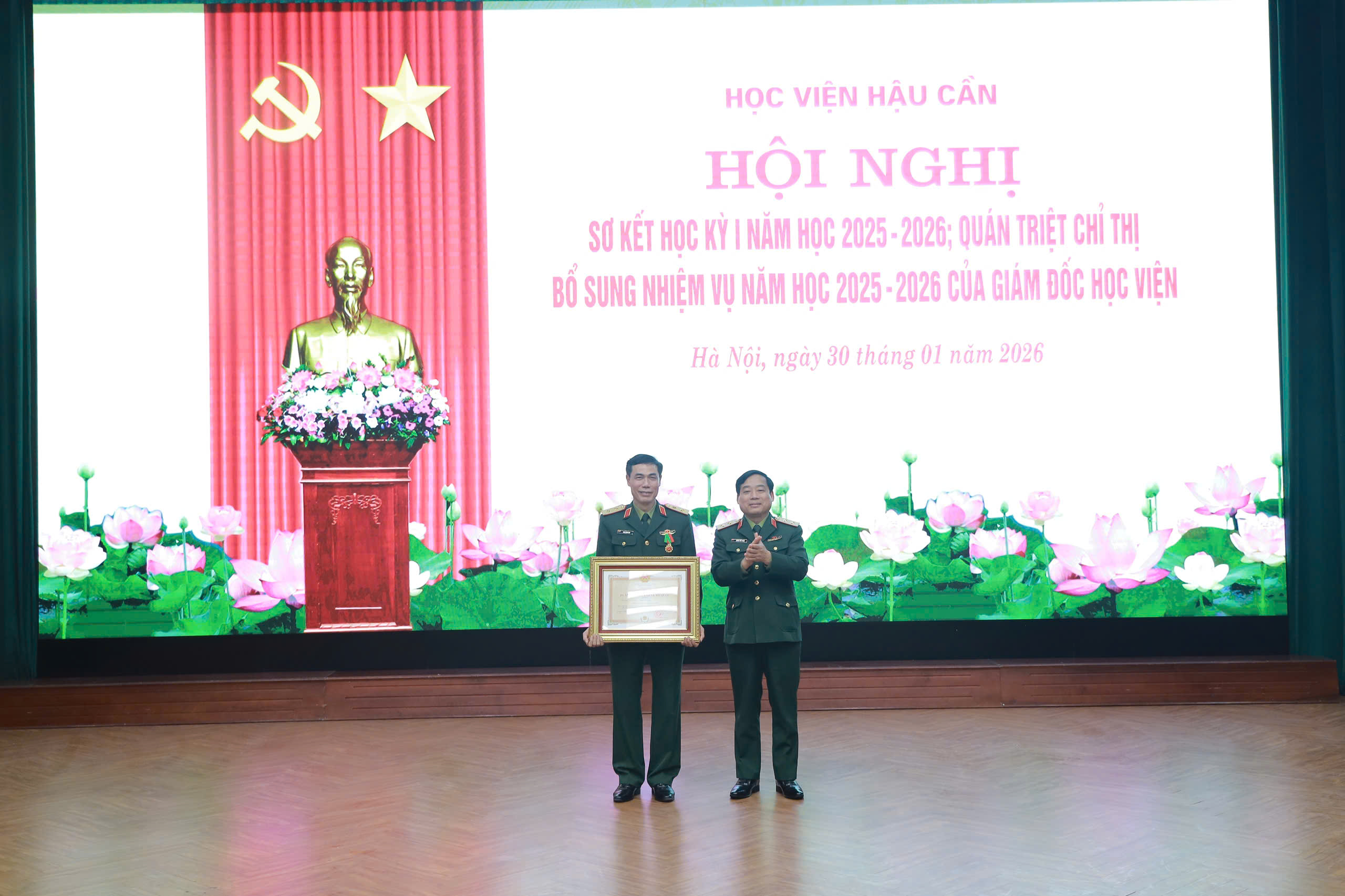 Lãnh đạo Học viện Hậu cần trao thưởng tặng các tập thể, cá nhân có thành tích xuất sắc trong thực hiện nhiệm vụ học kỳ I năm học 2025–2026.