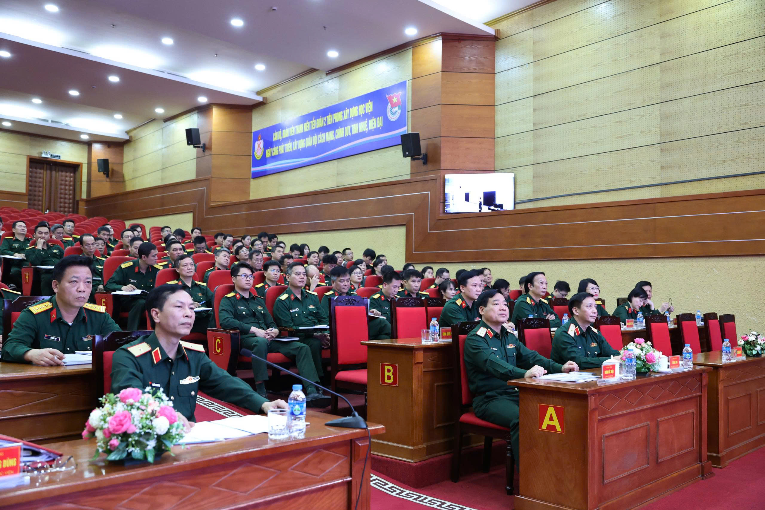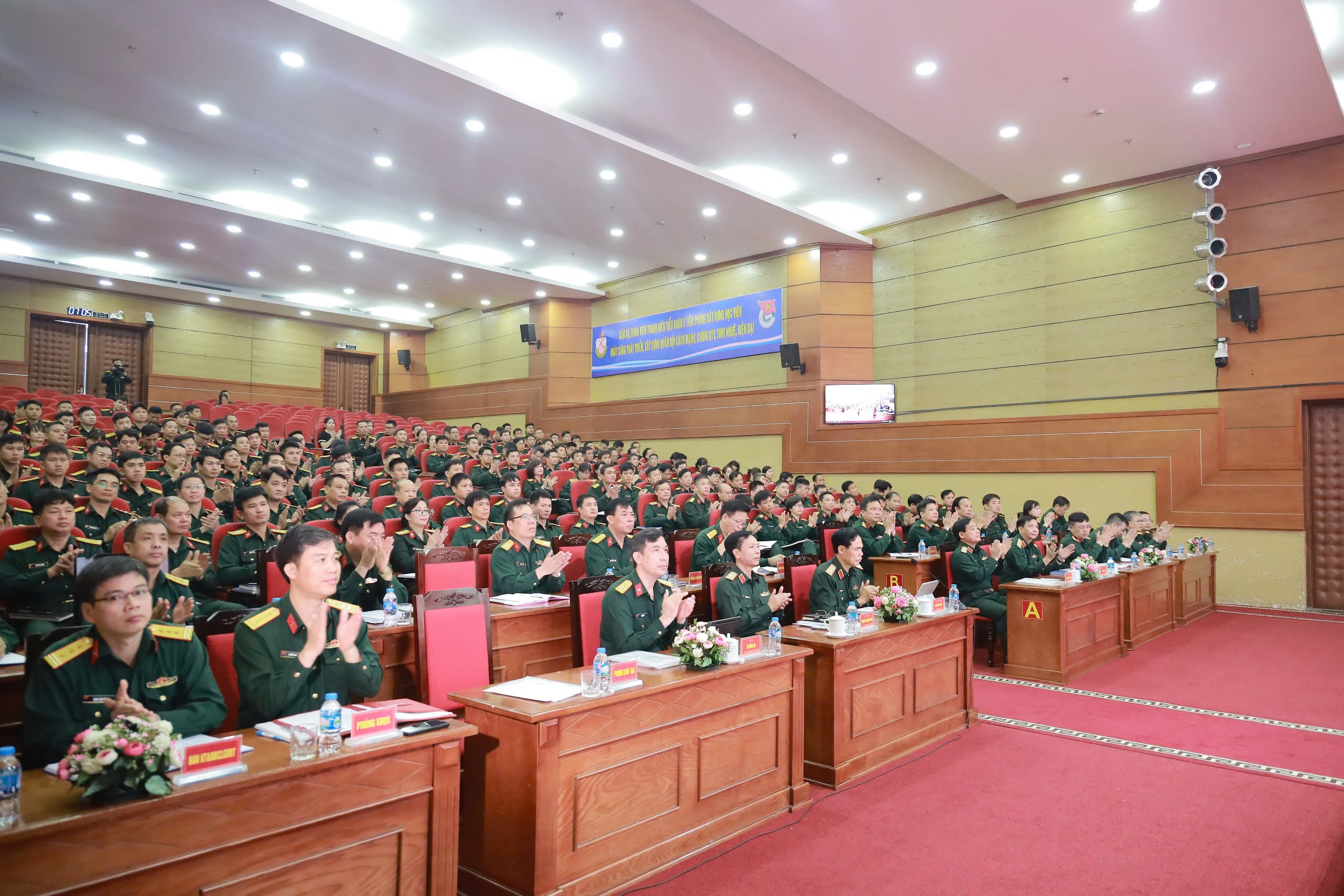 Lãnh đạo Học viện Hậu cần cùng các đại biểu dự khai mạc hội .