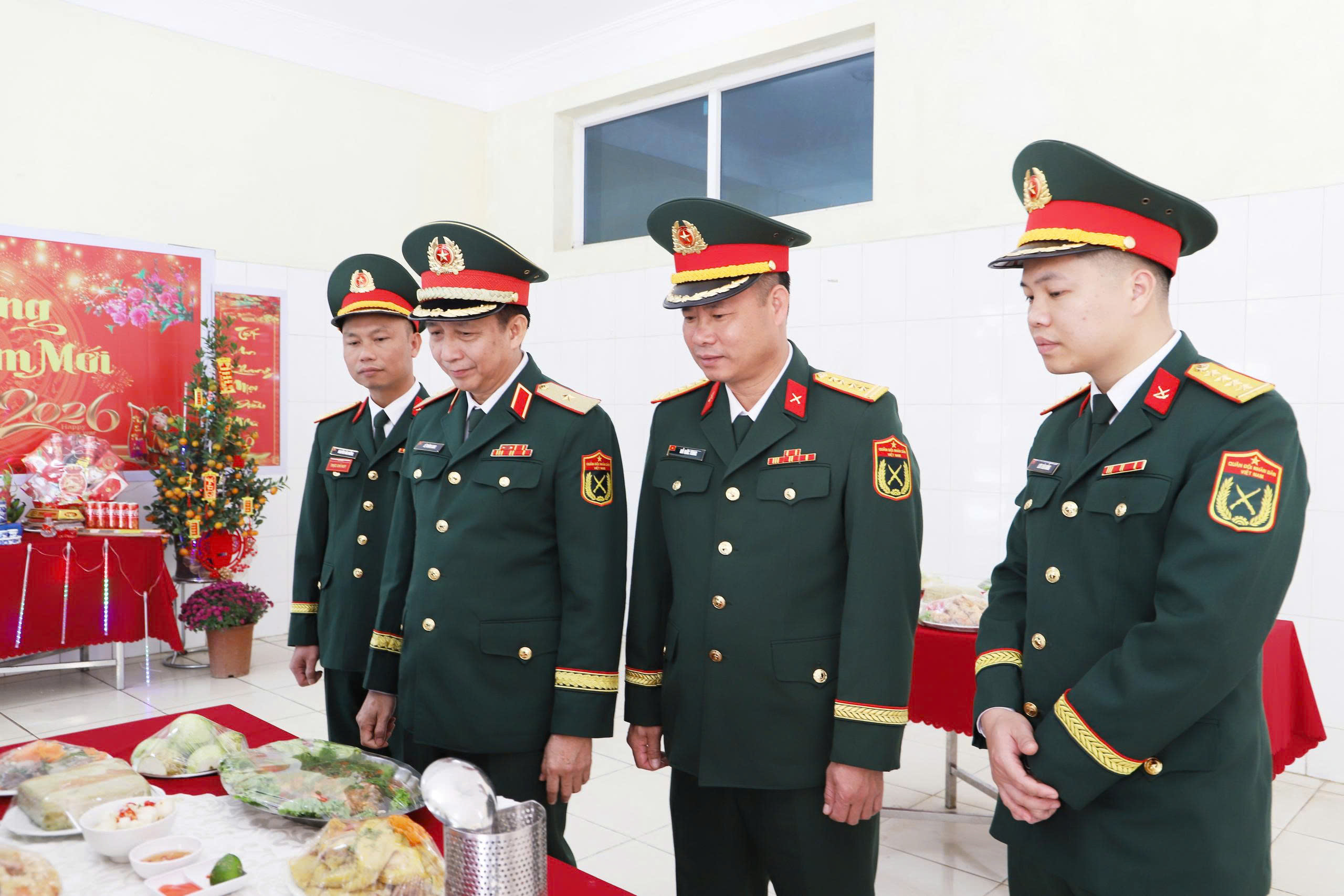 Cán bộ, học viên, chiến sĩ quây quần thưởng thức mâm cỗ ngày Tết trong không khí đầm ấm tại Học viện Hậu cần.