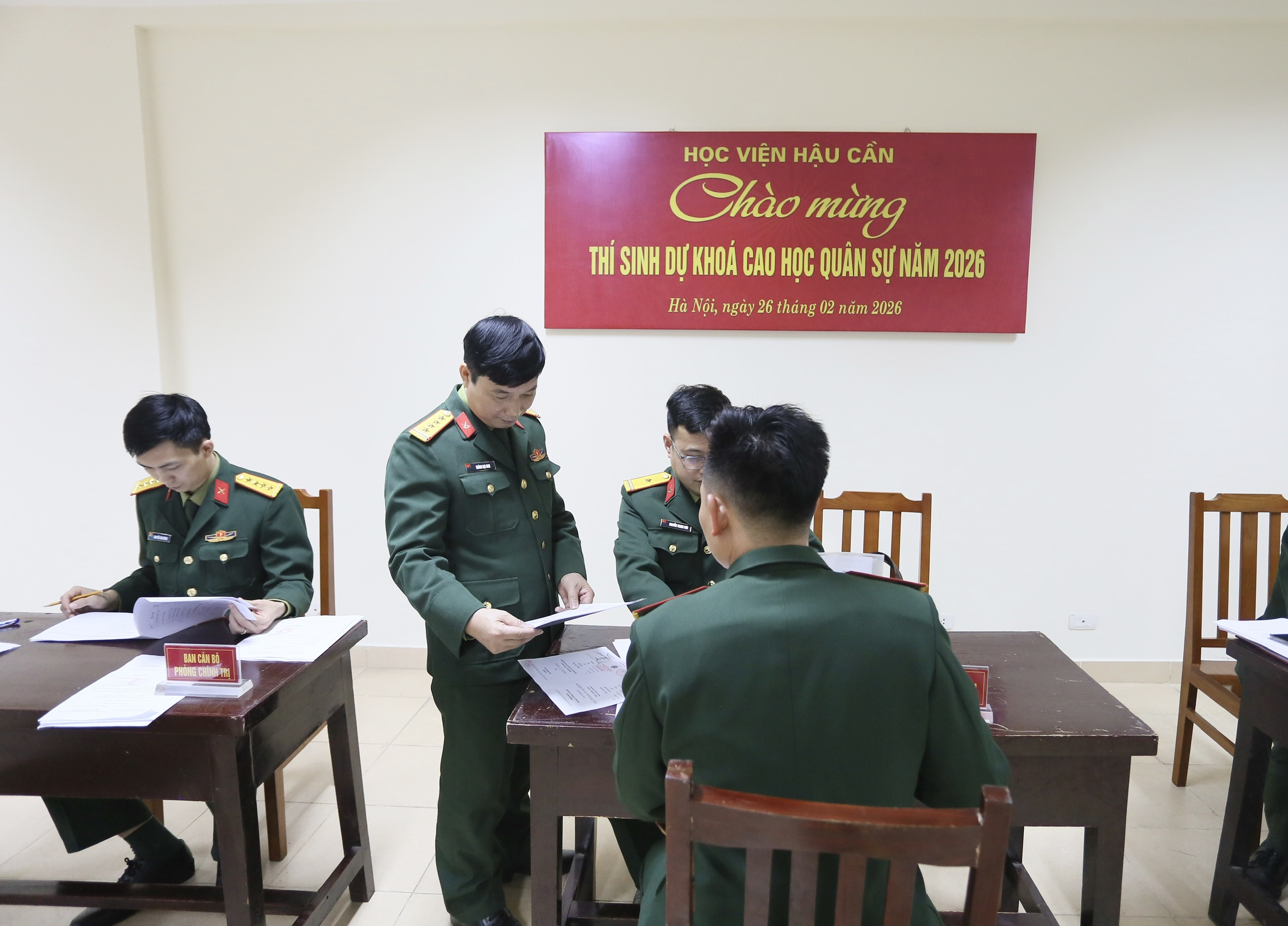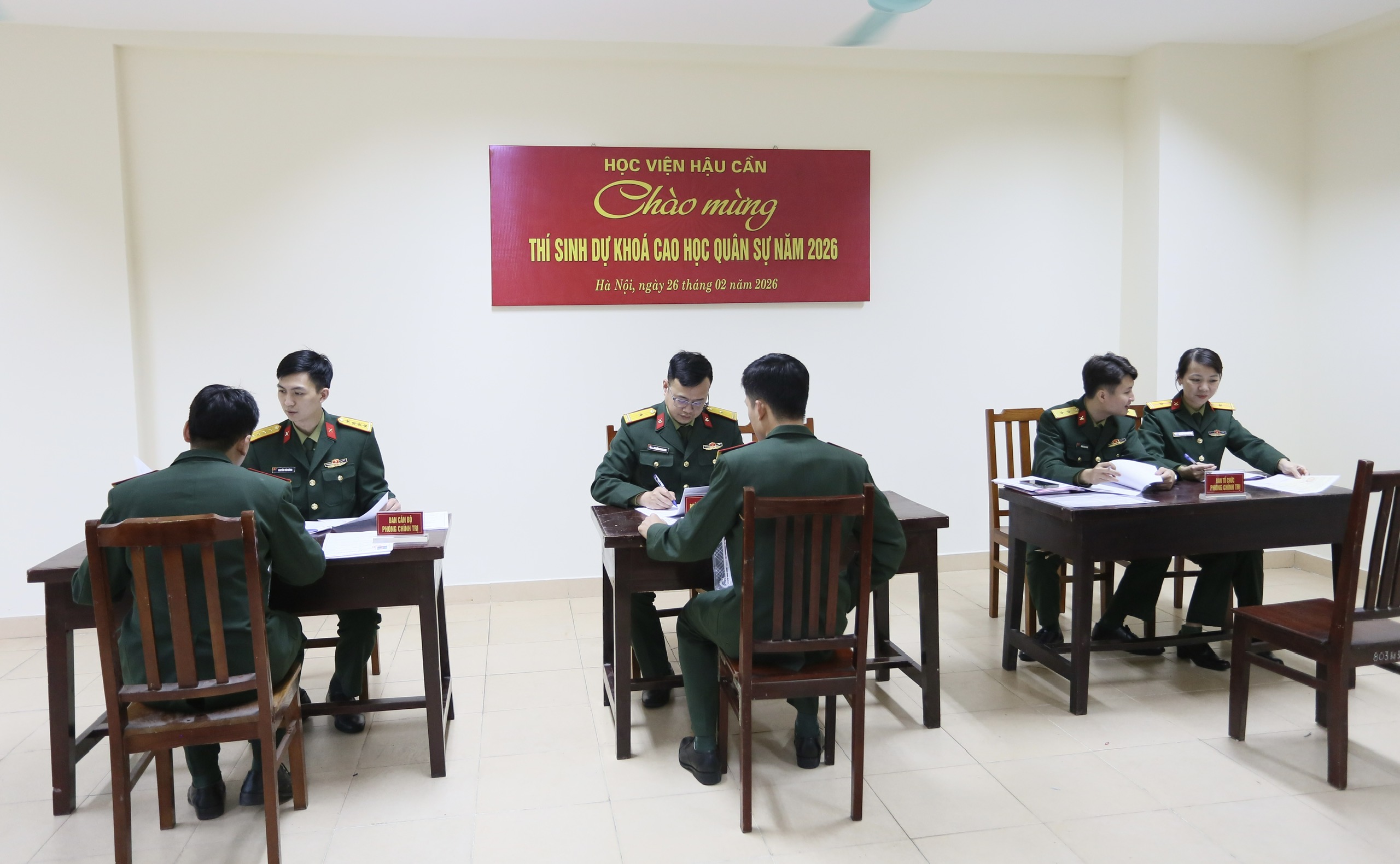 Sáng 26-2, tại Học viện Hậu cần, không khí đón tiếp thí sinh dự khóa cao học, cao học kết hợp đào tạo dài hạn Chủ nhiệm Hậu cần – Kỹ thuật cấp trung (lữ) đoàn năm 2026 diễn ra trang trọng, chặt chẽ, thắm tình đồng chí, đồng đội.