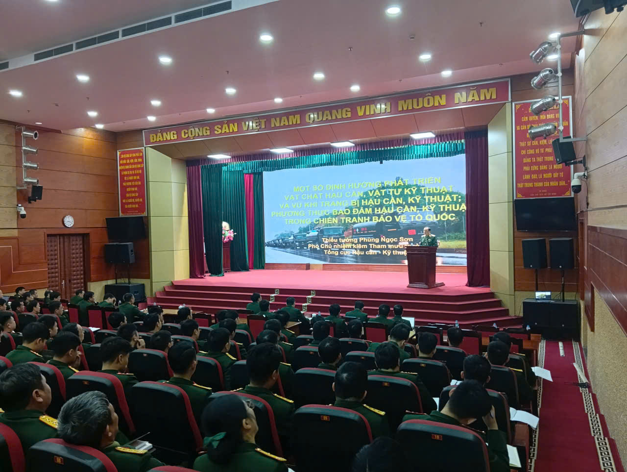 Quang cảnh buổi lên lớp chuyên đề của Thiếu tướng Phùng Ngọc Sơn, Phó Chủ nhiệm kiêm Tham mưu trưởng Tổng cục Hậu cần – Kỹ thuật tại Học viện Hậu cần.