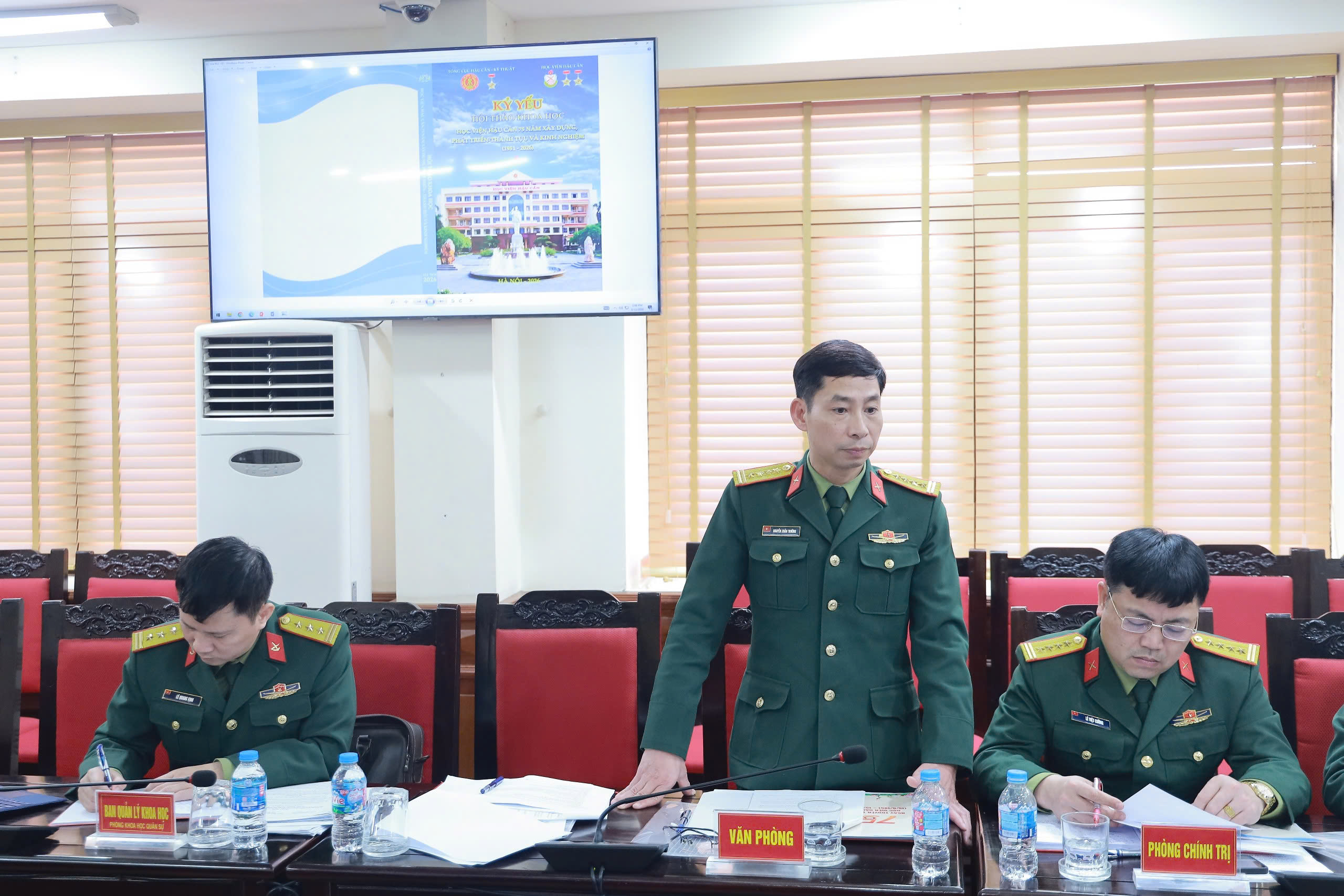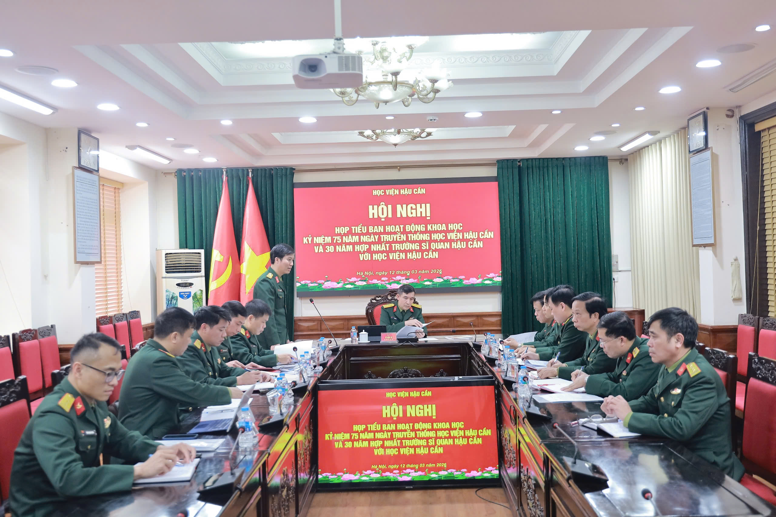 Chiều 12-3, tại Học viện Hậu cần, Tiểu ban Hoạt động khoa học tổ chức hội nghị nghe báo cáo một số kết quả triển khai công tác chuẩn bị Hội thảo khoa học chủ đề “Học viện Hậu cần 75 năm xây dựng, phát triển - Thành tựu và kinh nghiệm”. Đại tá, PGS, TS Vũ Hồng Hà, Phó Giám đốc Học viện chủ trì hội nghị. Tham dự hội nghị có các thành viên trong Tiểu ban Hoạt động khoa học.
