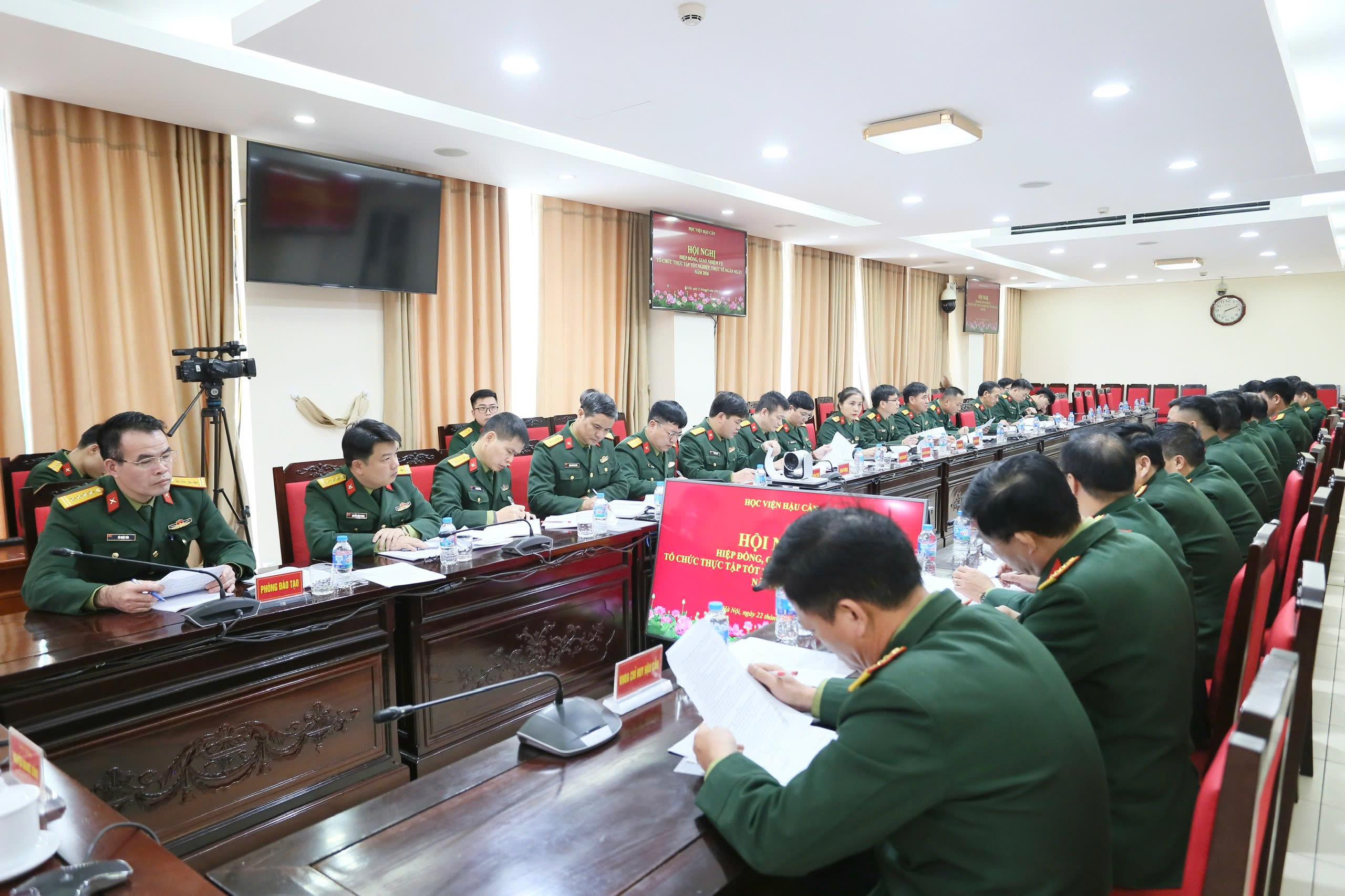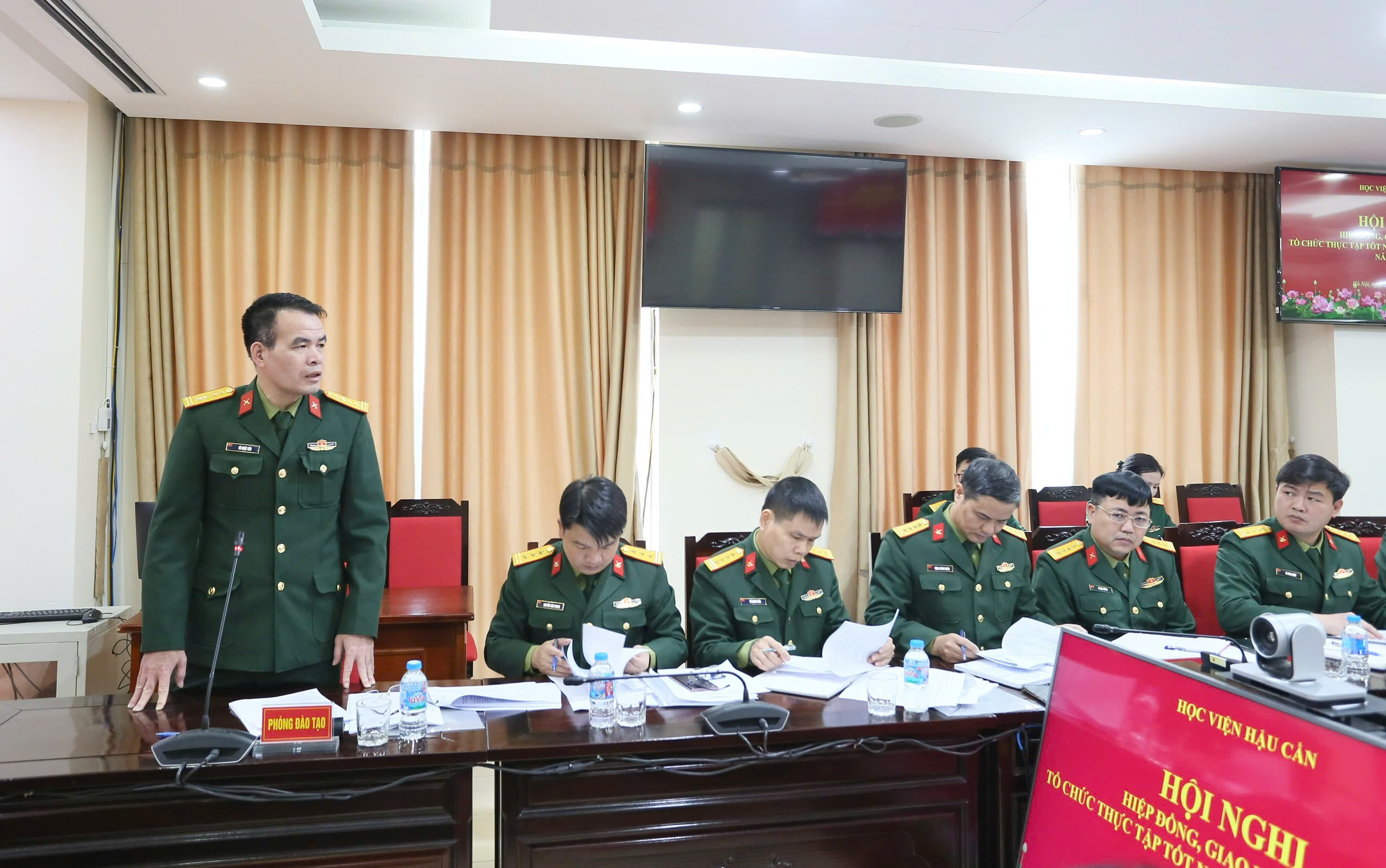 Tại hội nghị, Phòng Đào tạo đã báo cáo kết quả công tác chuẩn bị và hiệp đồng tổ chức thực tập, thực tế cho học viên các đối tượng đào tạo của Học viện. Theo kế hoạch năm học 2025 - 2026, Học viện tiếp tục tổ chức đưa học viên cuối khóa đi thực tập tốt nghiệp tại các cơ quan, đơn vị trong toàn quân theo chương trình, nội dung đào tạo đã xác định; đồng thời cử 31 cán bộ, giảng viên đi thực tế ngắn ngày, kết hợp chỉ đạo, kiểm tra và rút kinh nghiệm công tác thực tập tại đơn vị.