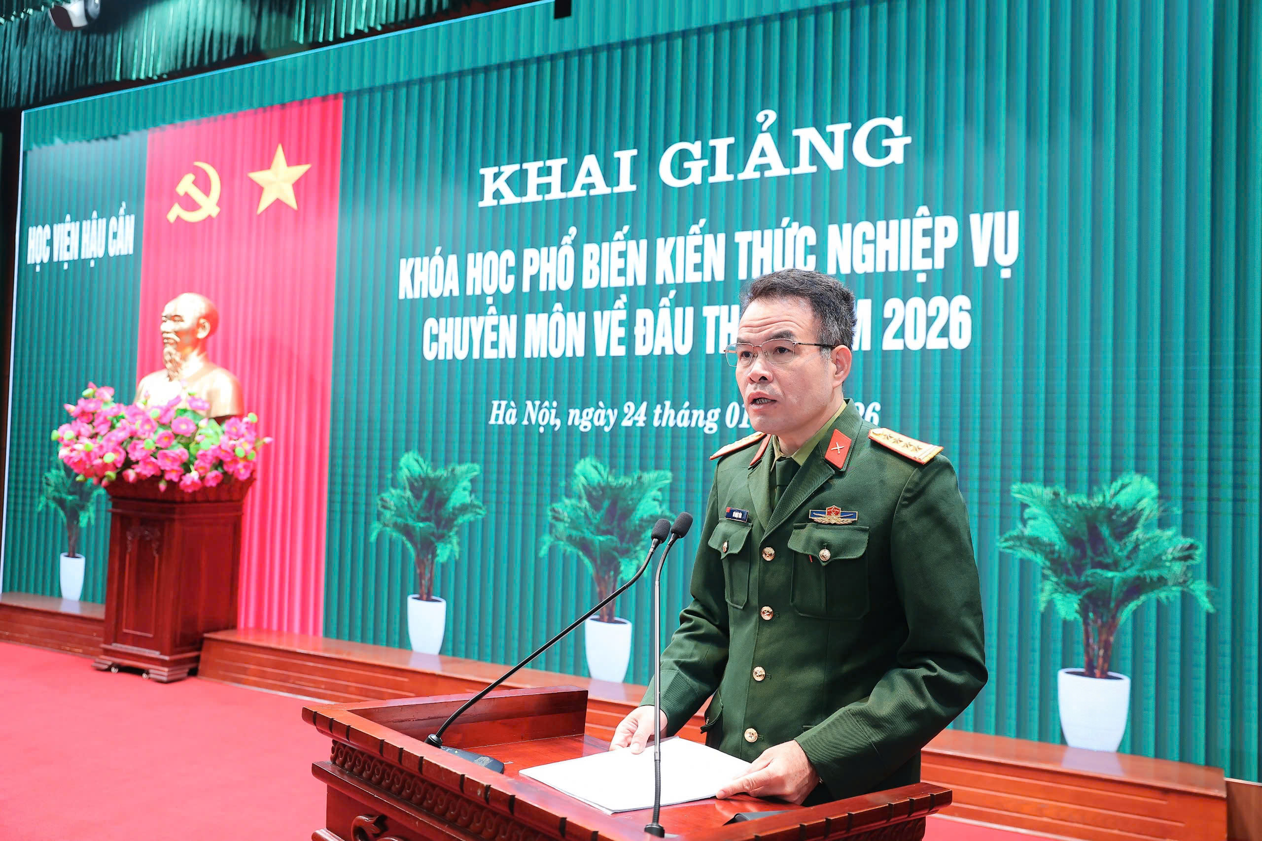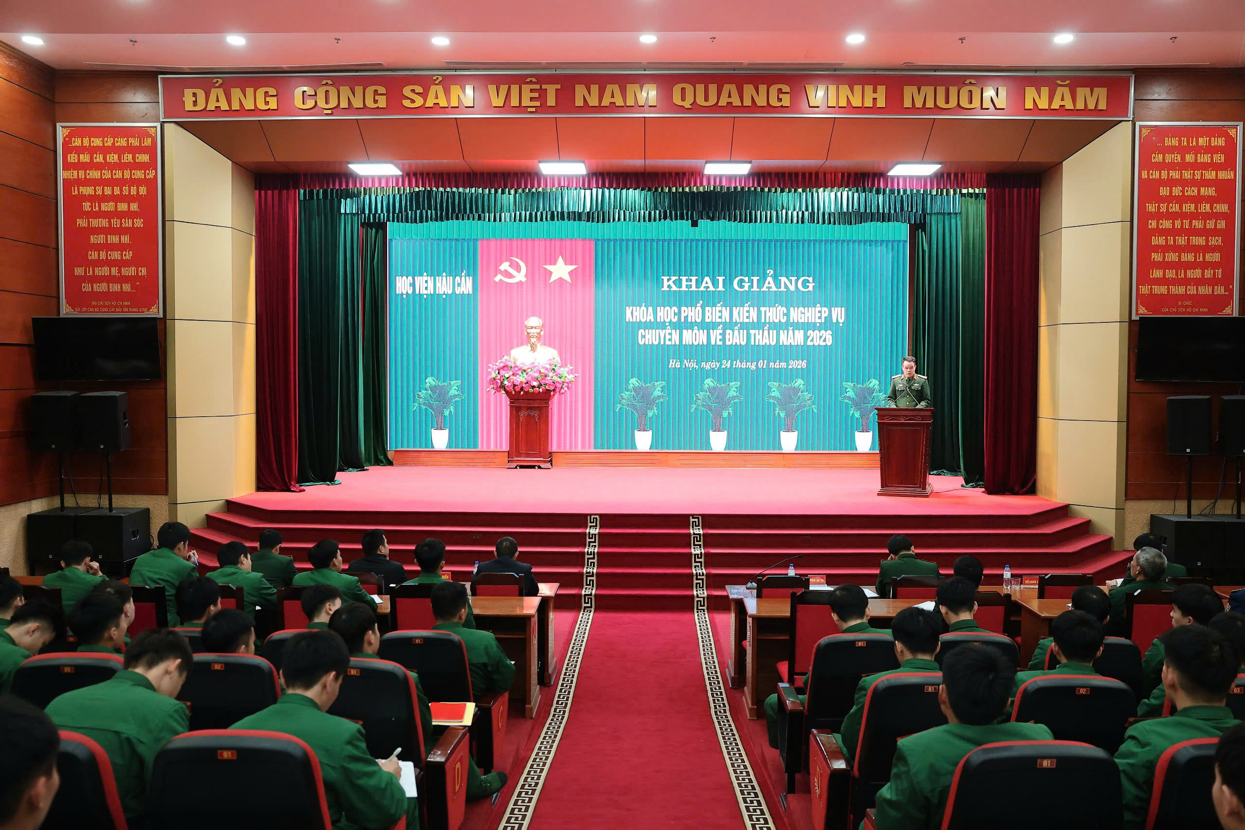 Sáng 24-1, Học viện Hậu cần tổ chức khai giảng Khóa học phổ biến kiến thức nghiệp vụ chuyên môn về đấu thầu năm 2026 cho cán bộ, giảng viên, học viên trong toàn Học viện. Dự khai giảng có đại biẻu chỉ huy các cơ quan, đơn vị trực thuộc Học viện cùng toàn thể học viên tham gia khóa học.