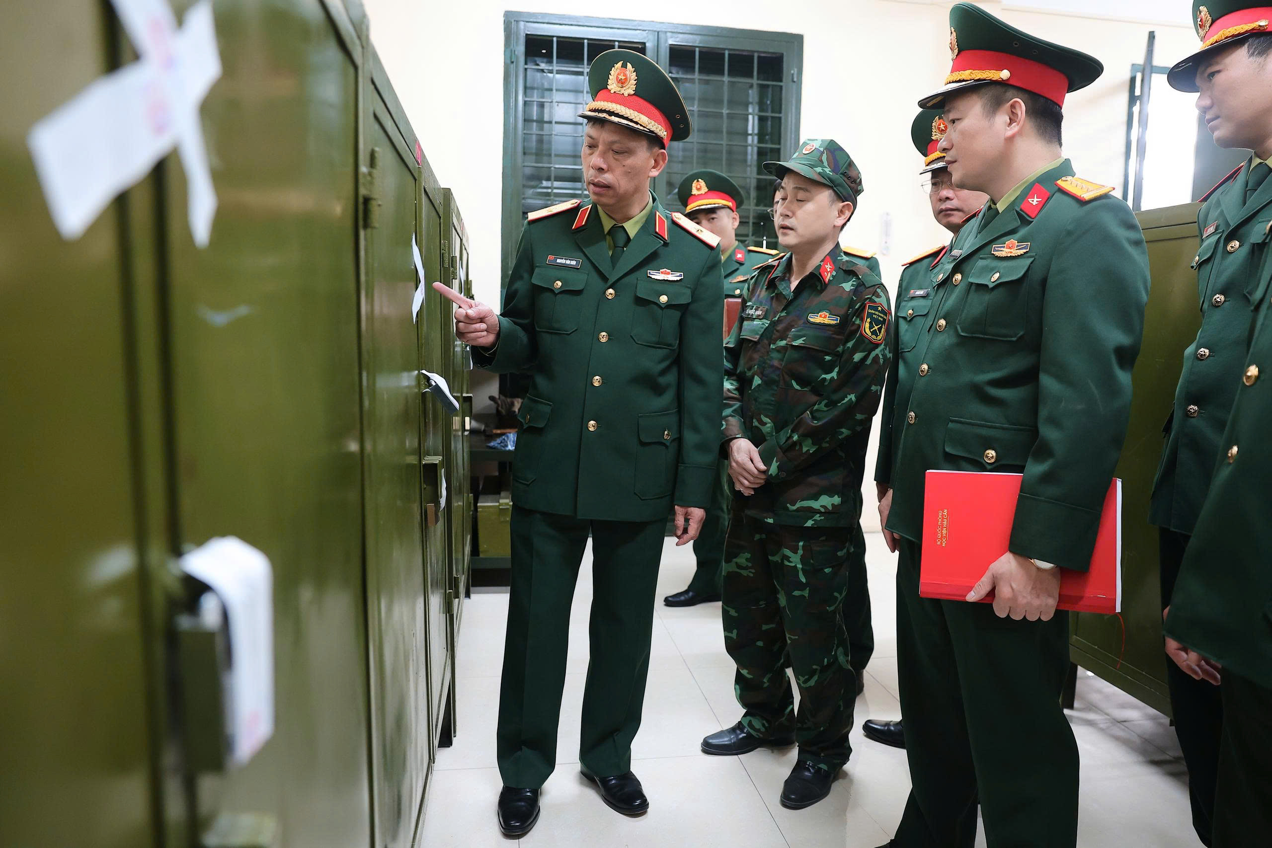 Thiếu tướng Nguyễn Văn Kiên, Phó Giám đốc Học viện Hậu cần kiểm tra công tác sẵn sàng chiến đấu, bảo đảm an toàn dịp Tết tại khu vực 1.