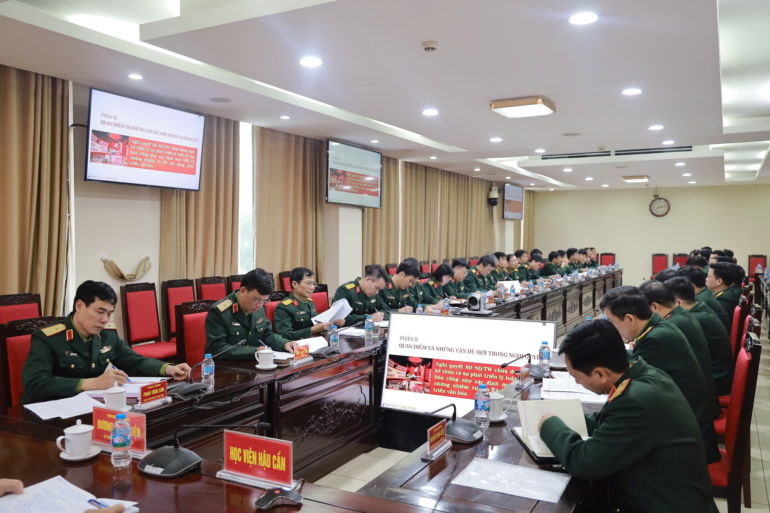 Quán triệt sâu sắc tinh thần chỉ đạo của Trung ương, cán bộ, đảng viên Học viện Hậu cần tập trung nghiên cứu những luận điểm mới, tư duy mới và yêu cầu cao, toàn diện mà các nghị quyết đặt ra đối với sự nghiệp phát triển văn hóa và kinh tế Nhà nước trong kỷ nguyên phát triển mới của đất nước.