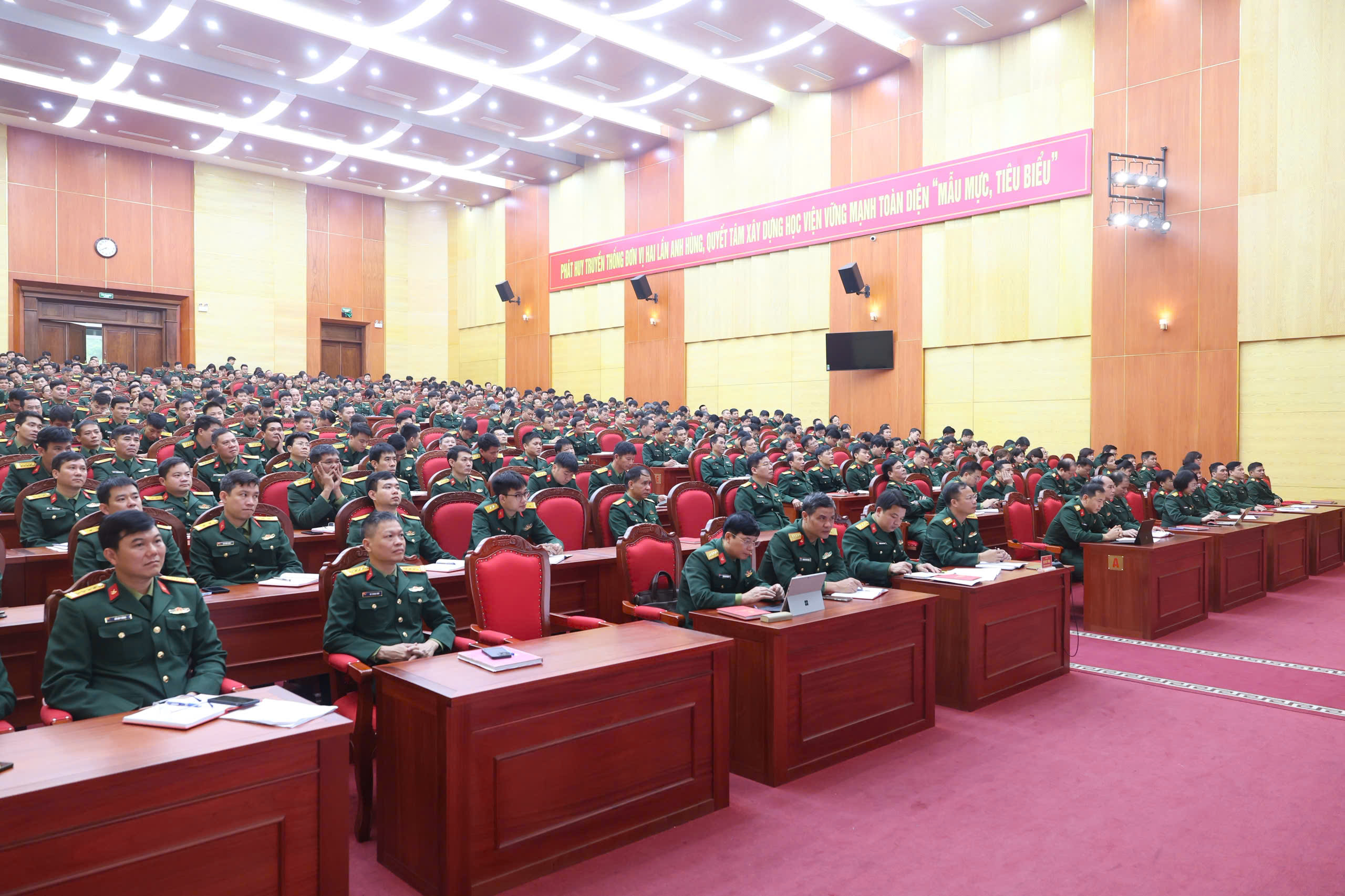 Sáng 25-2, tại Hà Nội, Học viện Hậu cần đã tổ chức cho cán bộ, giảng viên, học viên tham dự trực tuyến Hội nghị toàn quốc nghiên cứu, học tập, quán triệt và triển khai thực hiện Nghị quyết số 79-NQ/TW và Nghị quyết số 80-NQ/TW của Bộ Chính trị. Hội nghị được kết nối từ điểm cầu Trung ương đến các cơ quan, đơn vị trong toàn quân.