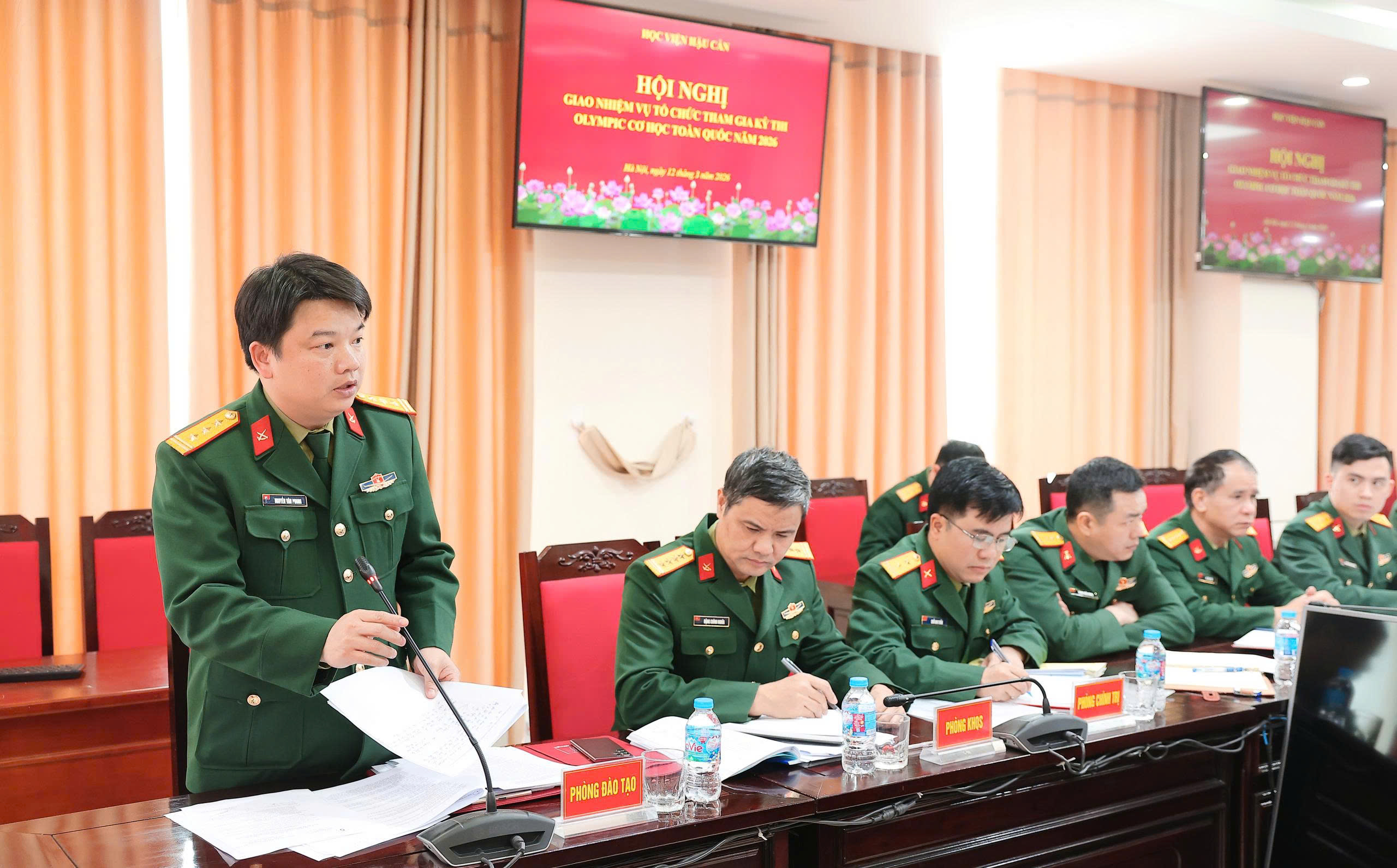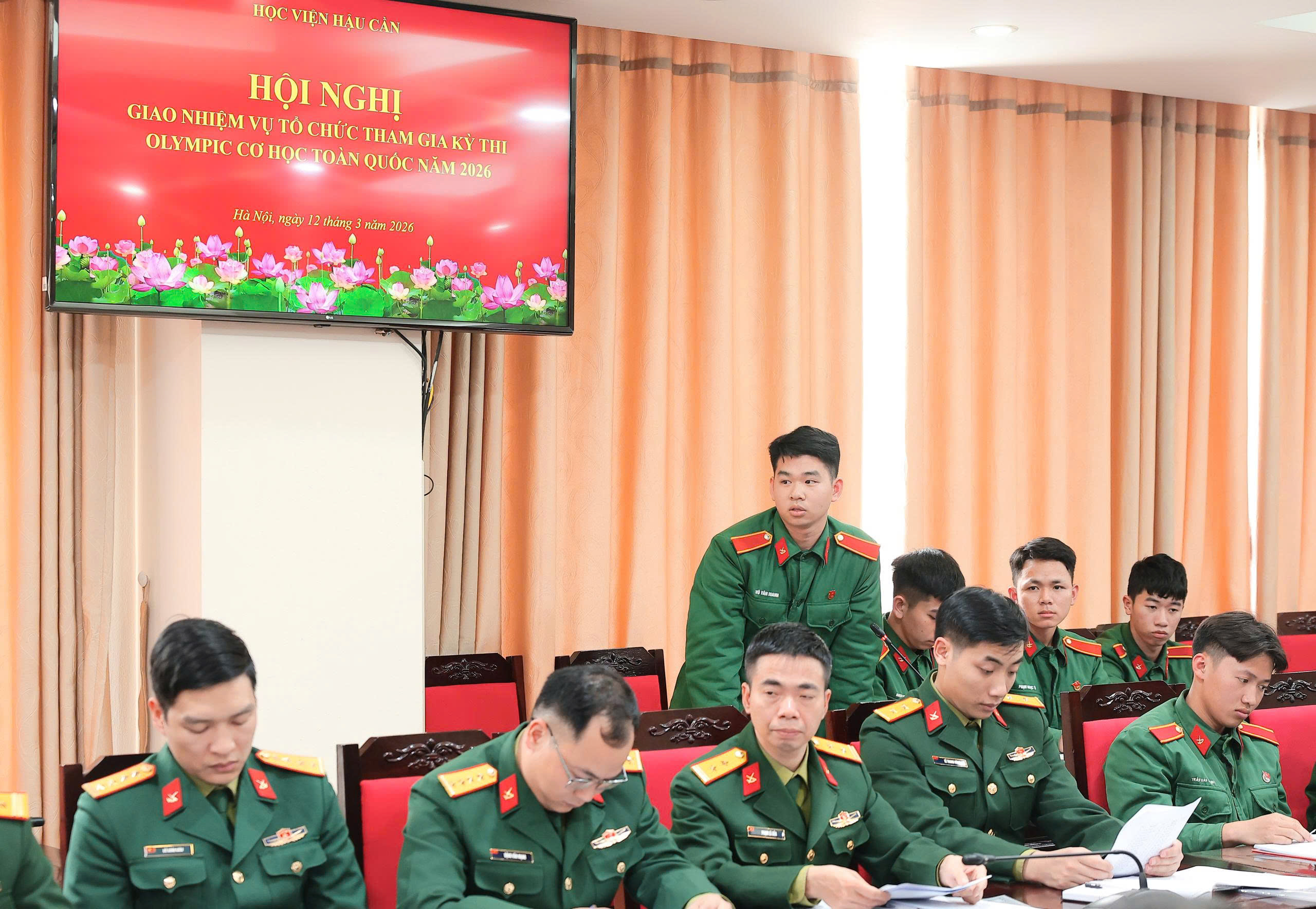 Tại hội nghị, Phòng Đào tạo báo cáo công tác chuẩn bị tham gia Kỳ thi Olympic Cơ học toàn quốc năm 2026. Theo đó, đây là năm đầu tiên Học viện Hậu cần tham dự Kỳ thi Olympic Cơ học toàn quốc do Hội Cơ học Việt Nam tổ chức. Việc tham gia kỳ thi không chỉ là cơ hội để cán bộ, giảng viên, học viên giao lưu, học hỏi, nâng cao trình độ chuyên môn, mà còn góp phần khẳng định uy tín, vị thế của Học viện trong hệ thống giáo dục quốc dân.