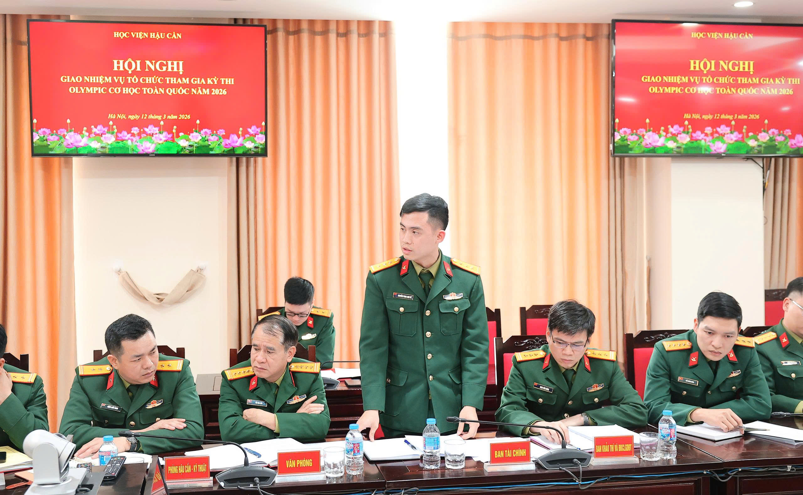 Chiều 12-3, Học viện Hậu cần tổ chức hội nghị giao nhiệm vụ tổ chức tham gia Kỳ thi Olympic Cơ học toàn quốc năm 2026. Thiếu tướng, TS Nguyễn Quang Dũng, Phó giám đốc Học viện chủ trì hội nghị. Dự hội nghị có đại biểu chỉ huy các cơ quan, khoa, đơn vị trực thuộc Học viện; các giảng viên trong tổ huấn luyện và thành viên các đội tuyển Olympic Cơ học.