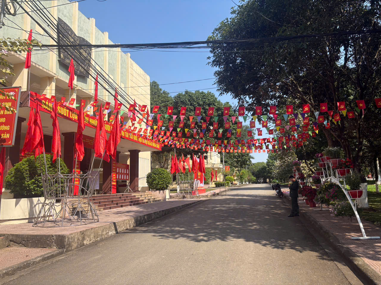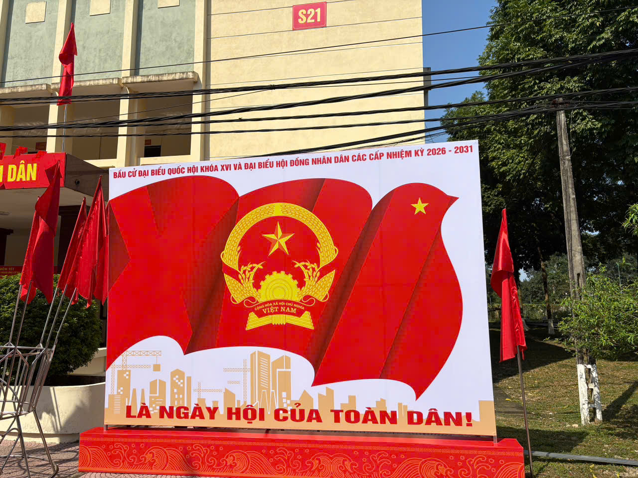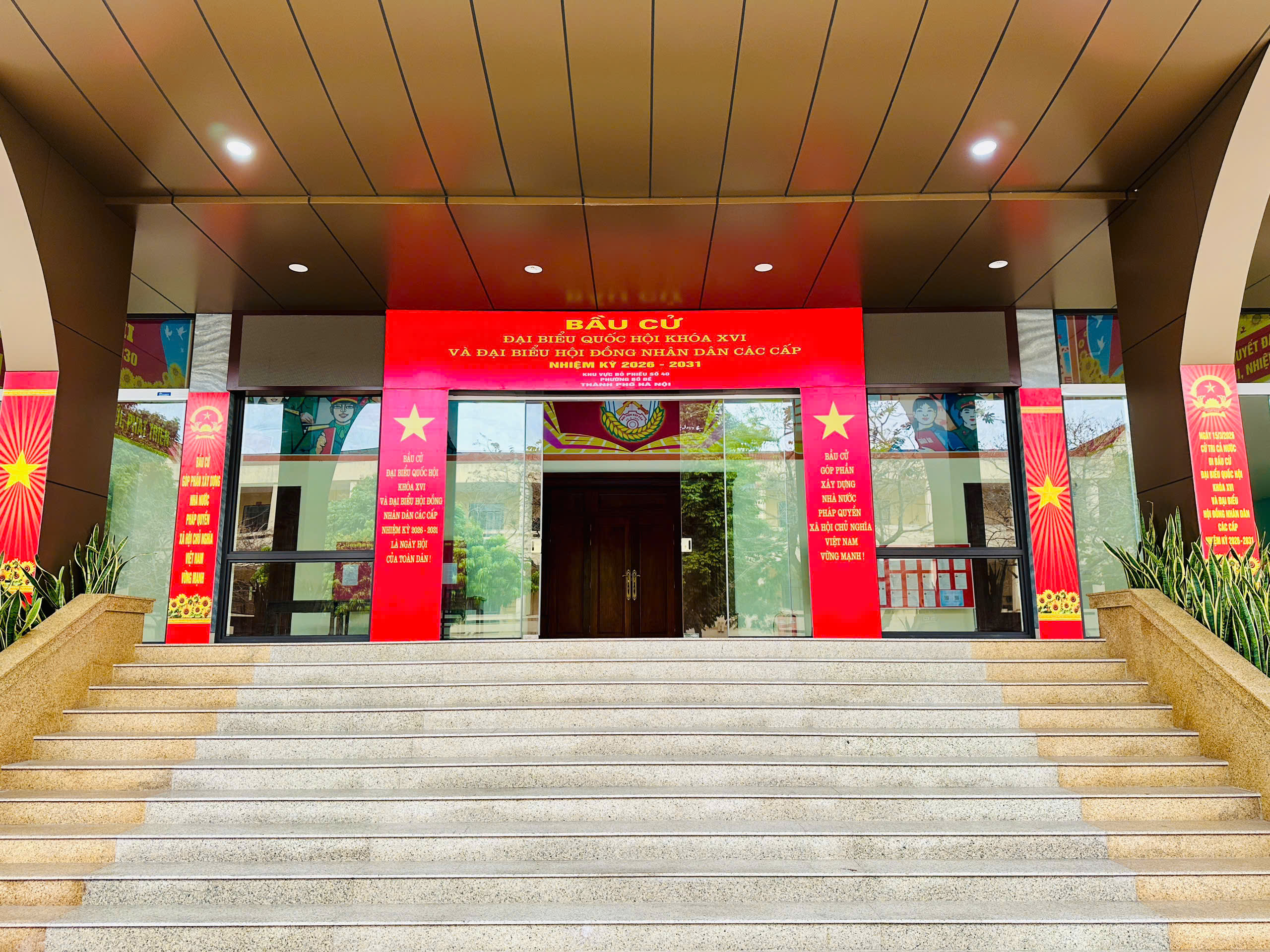 Không gian tuyên truyền trực quan về bầu cử tại các hội trường được hoàn thiện.