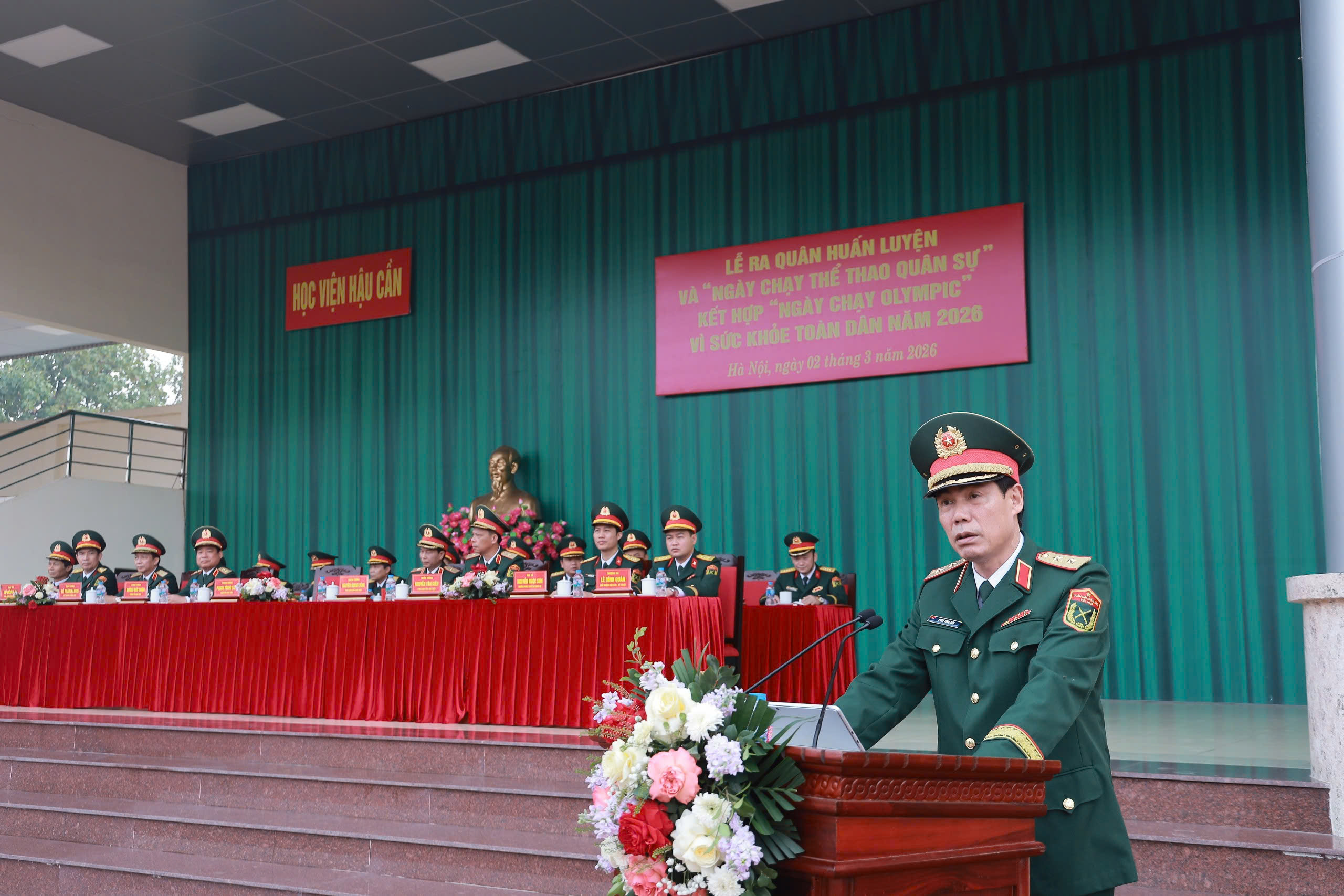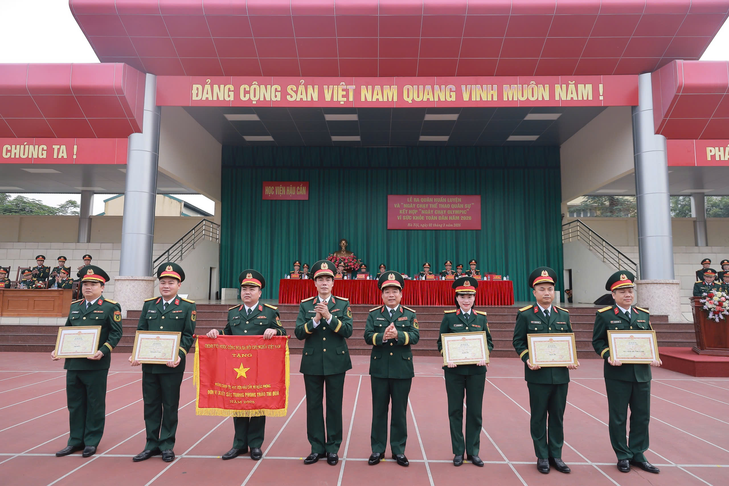 Sáng 2-3, tại Hà Nội, Học viện Hậu cần trọng thể tổ chức Lễ ra quân huấn luyện năm 2026 và “Ngày chạy thể thao quân sự” kết hợp “Ngày chạy Olympic vì sức khỏe toàn dân”. Trung tướng, GS, TS Phan Tùng Sơn, Giám đốc Học viện, chủ trì buổi lễ. Cùng dự có Trung tướng Dương Đức Thiện, Chính ủy Học viện; các đồng chí trong Thường vụ Đảng ủy, Ban Giám đốc Học viện; chỉ huy các cơ quan, đơn vị cùng đông đảo cán bộ, giảng viên, học viên, nhân viên, chiến sĩ trong toàn Học viện.