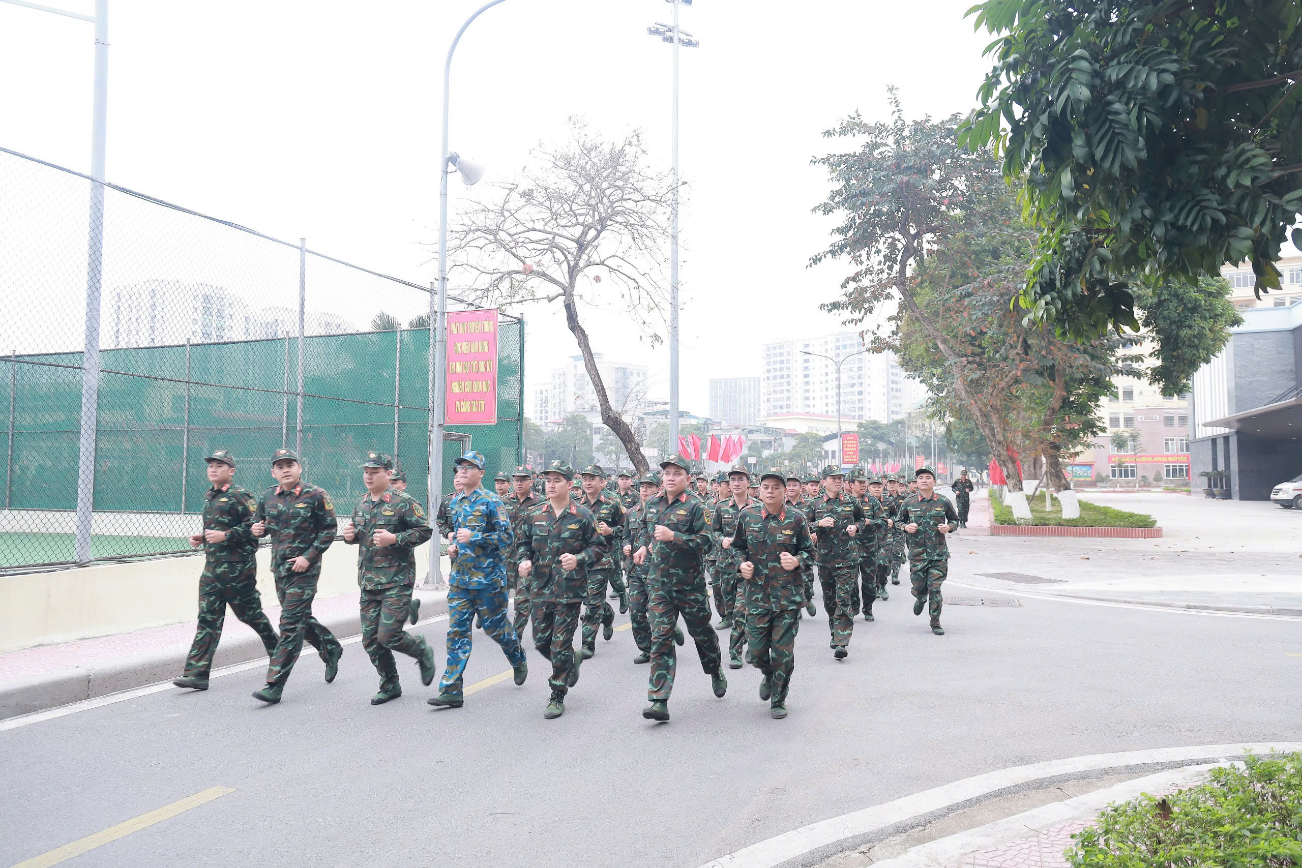 Gắn với Lễ ra quân huấn luyện, Học viện tổ chức “Ngày chạy thể thao quân sự” kết hợp “Ngày chạy Olympic vì sức khỏe toàn dân”, nhằm tiếp tục đẩy mạnh phong trào rèn luyện thân thể theo gương Bác Hồ vĩ đại, cụ thể hóa tinh thần “Khỏe để xây dựng và bảo vệ Tổ quốc”, đồng thời hưởng ứng thông điệp “Hữu nghị thông qua thể thao” do Hội đồng Thể thao Quân sự Quốc tế (CISM) phát động.