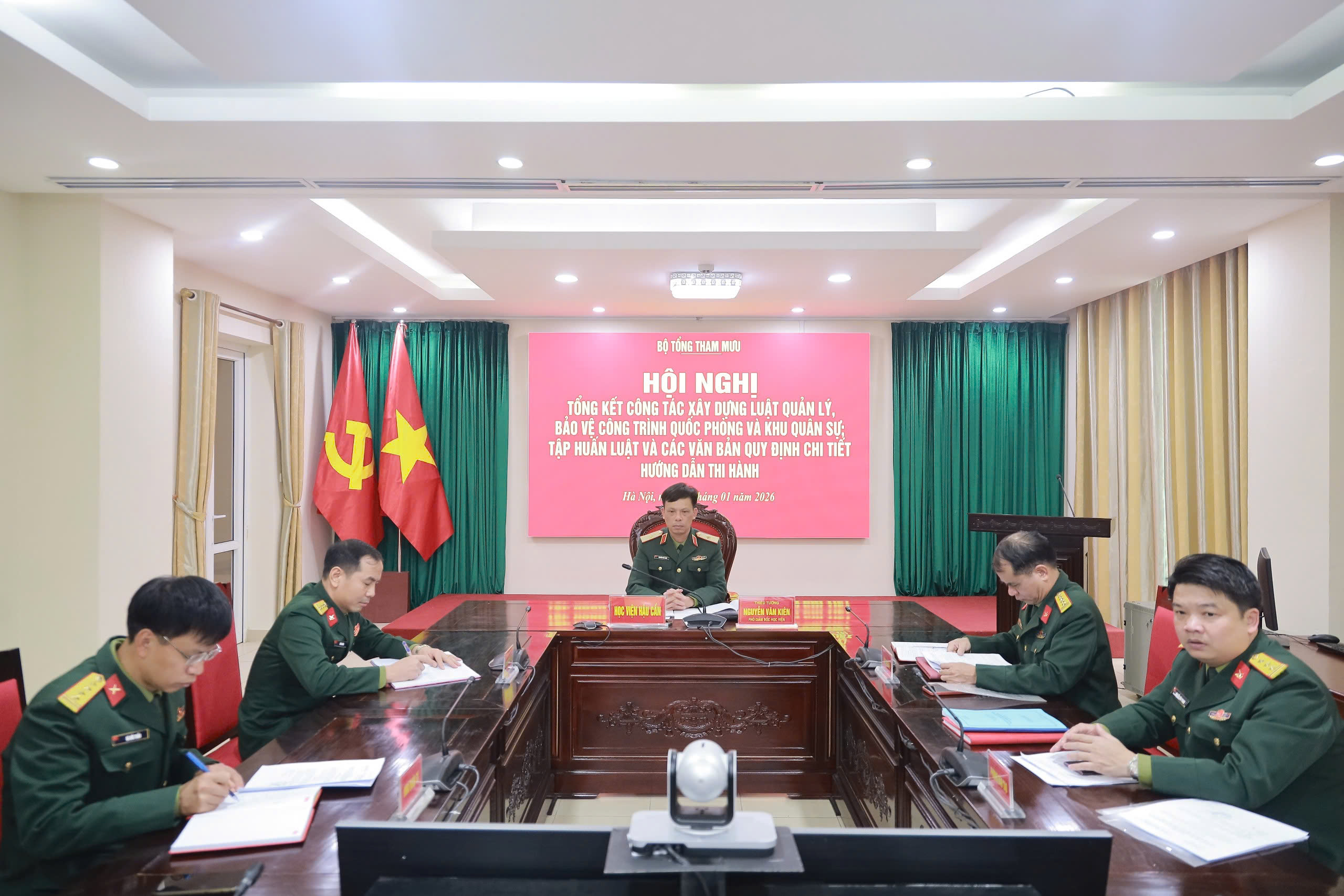 Chiều 27-01, Bộ Quốc phòng tổ chức Hội nghị tổng kết xây dựng Luật Quản lý, bảo vệ công trình quốc phòng và khu quân sự. Đồng chí Thượng tướng Huỳnh Chiến Thắng, Phó Tổng Tham mưu trưởng Quân đội nhân dân Việt Nam chủ trì hội nghị. Hội nghị được tổ chức theo hình thức trực tiếp kết hợp trực tuyến, kết nối với 124 điểm cầu trong toàn quân.