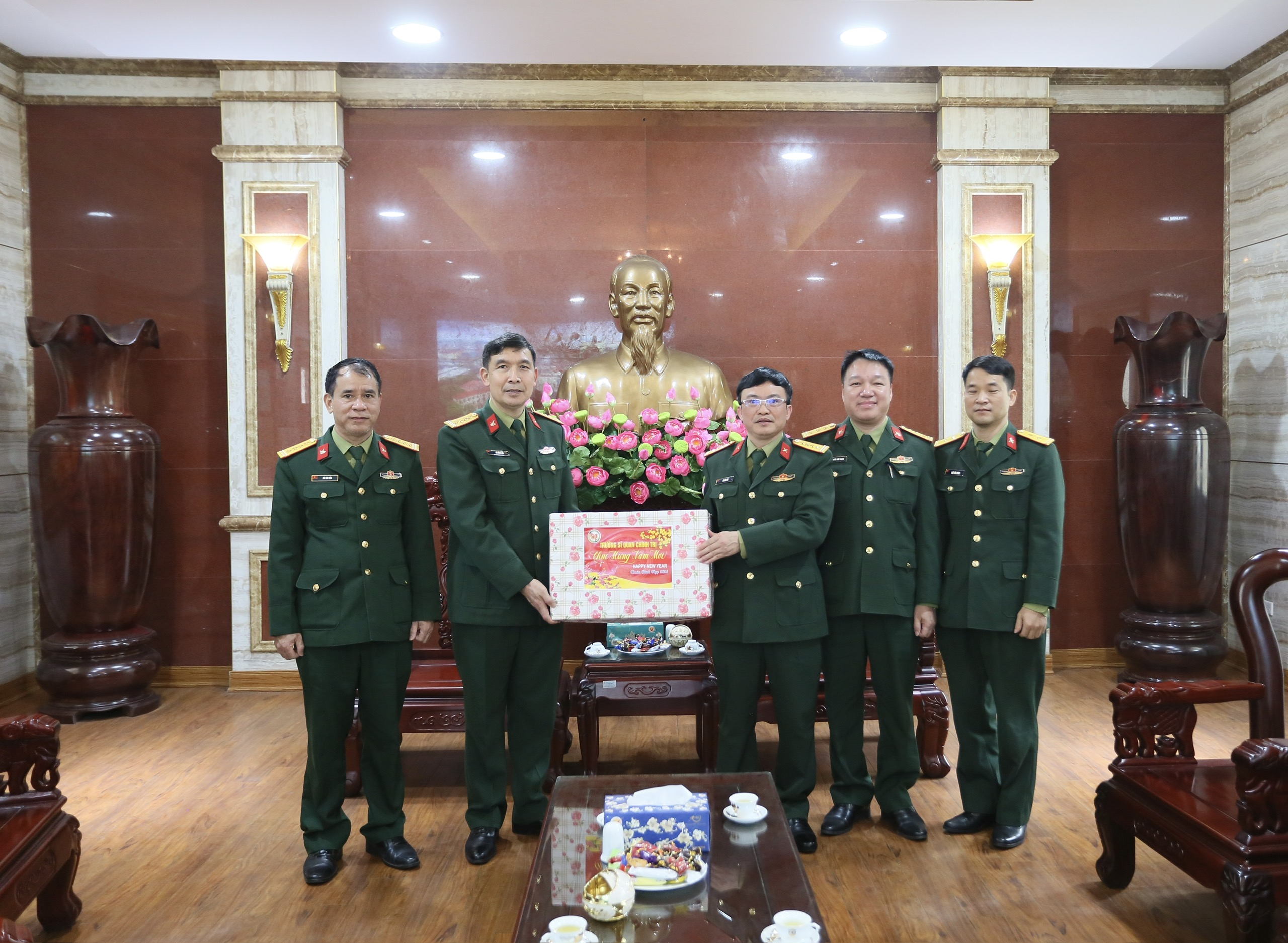 Tiếp đó, Đoàn công tác Trường Sĩ quan Chính trị đến thăm, chúc Tết Học viện Hậu cần, thể hiện tình cảm gắn bó giữa các cơ sở đào tạo lớn của Quân đội. Đại diện lãnh đạo Trường Sĩ quan Chính trị đánh giá cao kết quả phối hợp giữa hai đơn vị trên các mặt công tác, nhất là trong đào tạo, bồi dưỡng đội ngũ cán bộ, giảng viên và nghiên cứu khoa học. Nhân dịp Tết đến, xuân về, đoàn gửi lời chúc tốt đẹp nhất tới cán bộ, giảng viên, học viên Học viện, tin tưởng Học viện Hậu cần sẽ tiếp tục phát triển vững chắc, đóng góp tích cực vào sự nghiệp xây dựng Quân đội cách mạng, chính quy, tinh nhuệ, hiện đại.