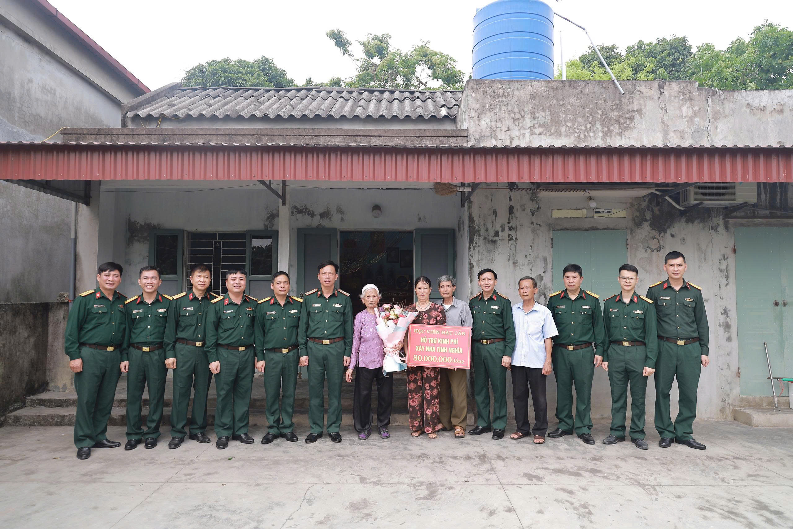 Lãnh đạo Học viện Hậu cần trao kinh phí hỗ trợ xây dựng Nhà tình nghĩa tặng gia đình bà Phạm Thị Thái.