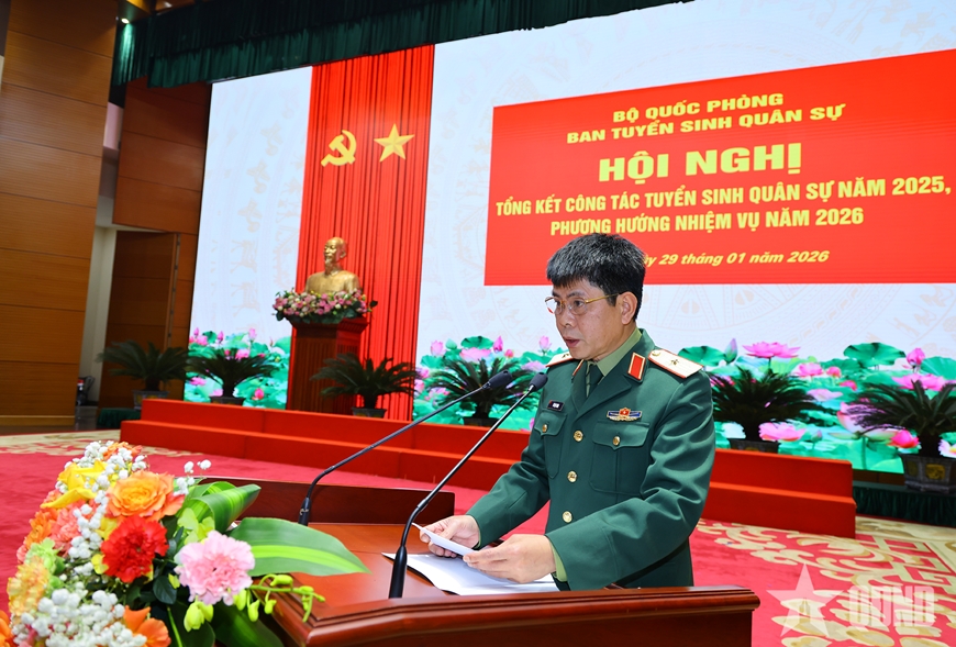 Chiều 29-1, tại Hà Nội, Bộ Quốc phòng tổ chức Hội nghị tổng kết công tác tuyển sinh quân sự (TSQS) năm 2025, phương hướng, nhiệm vụ năm 2026. Đại tướng Nguyễn Tân Cương, Ủy viên Trung ương Đảng, Ủy viên Thường vụ Quân ủy Trung ương, Tổng Tham mưu trưởng QĐND Việt Nam, Thứ trưởng Bộ Quốc phòng, Trưởng Ban TSQS Bộ Quốc phòng chủ trì hội nghị.