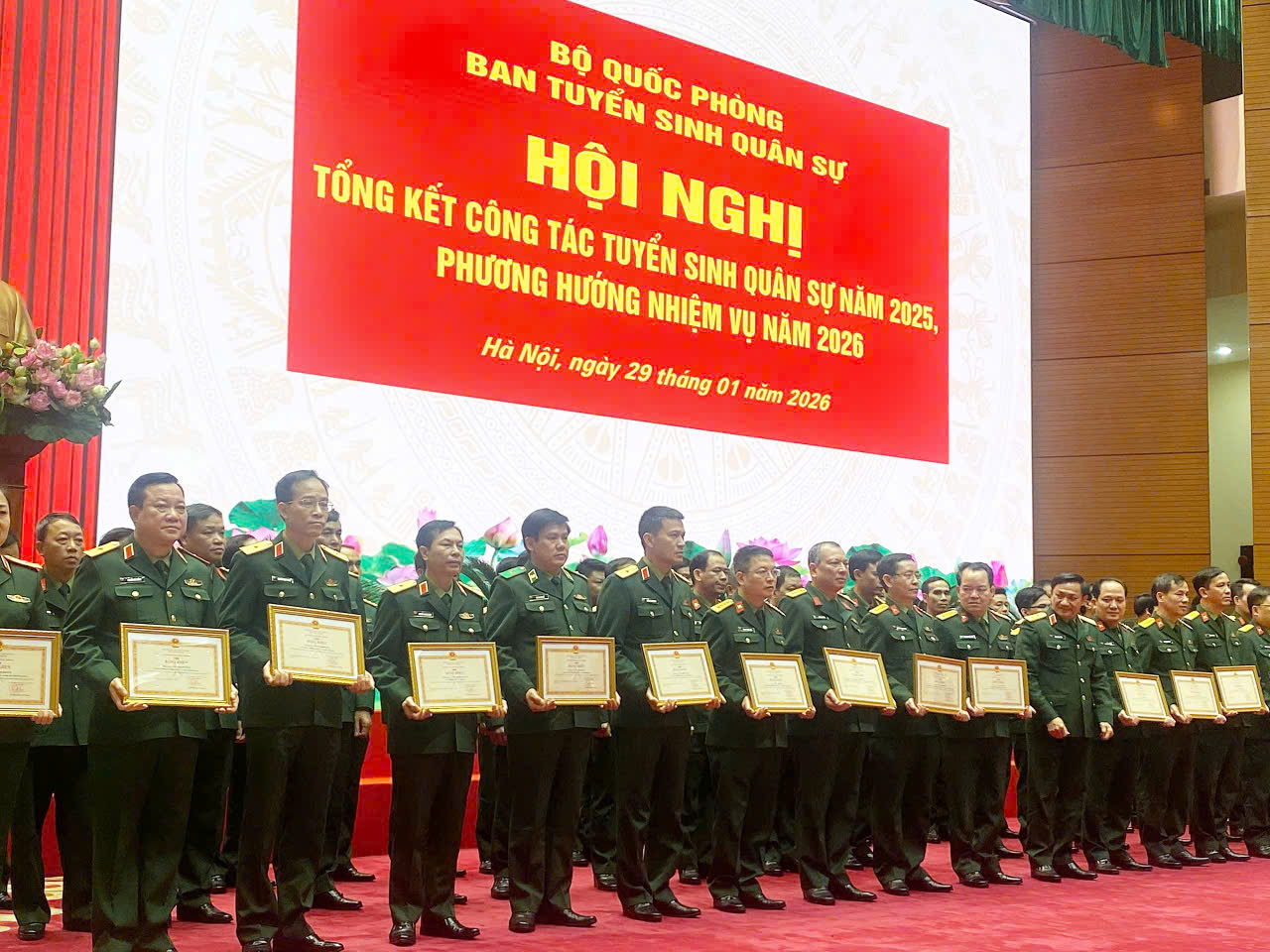 Cũng tại hội nghị, Bộ Quốc phòng đã Quyết định trao thưởng cho 95 tập thể và 136 cá nhân tiêu biểu trong công tác TSQS năm 2025. Với những thành tích xuất sắc trong công tác tuyển sinh, tập thể Học viện Hậu cần và các cá nhân: Thiếu tướng, TS Nguyễn Quang Dũng, Phó Giám đốc Học viện; Đại tá Vũ Nhật Văn, Trưởng phòng Đào tạo được Bộ trưởng Bộ Quốc phòng tặng Bằng khen.