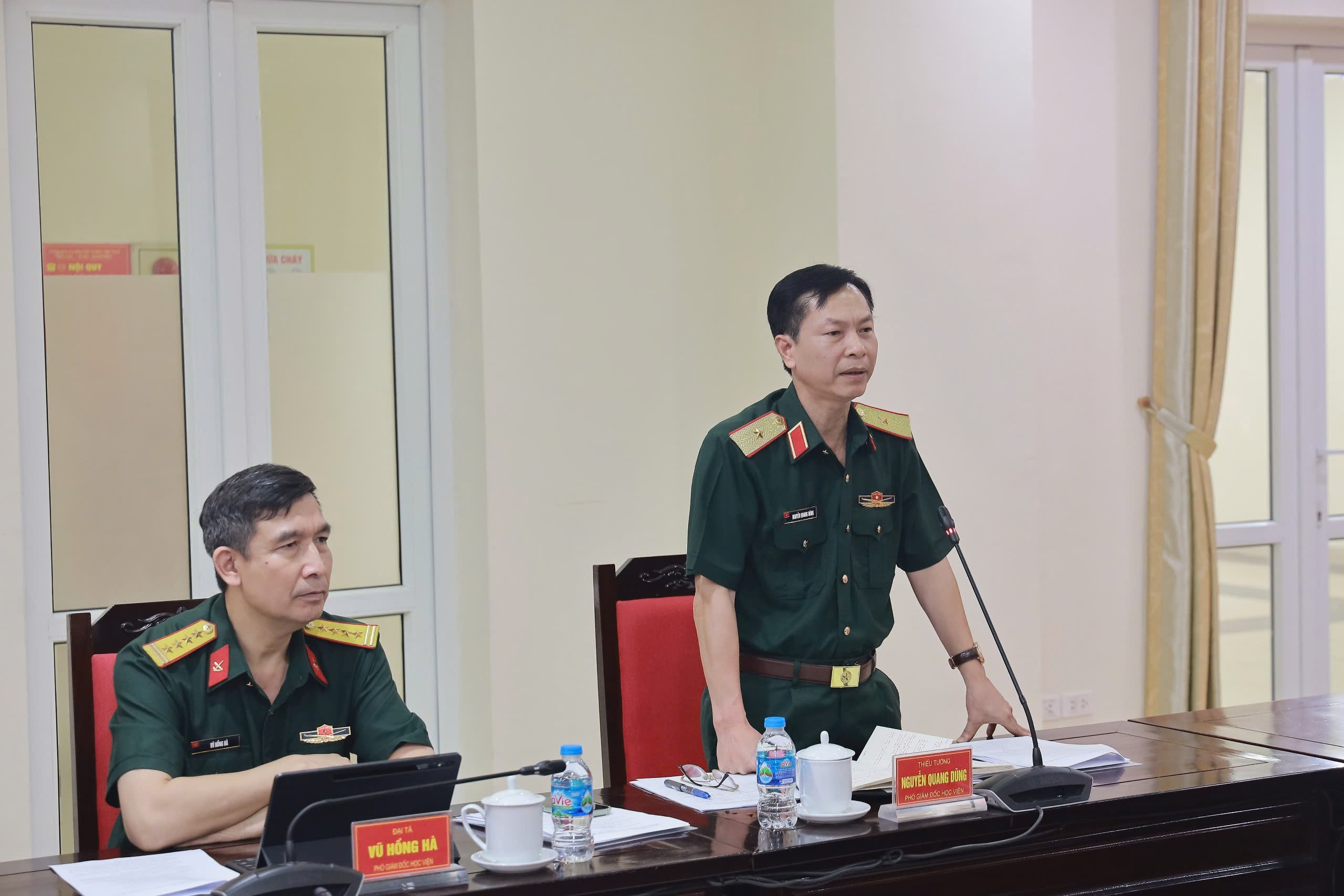 Thiếu tướng, TS Nguyễn Quang Dũng, Phó Giám đốc Học viện phát biểu tại phiên họp