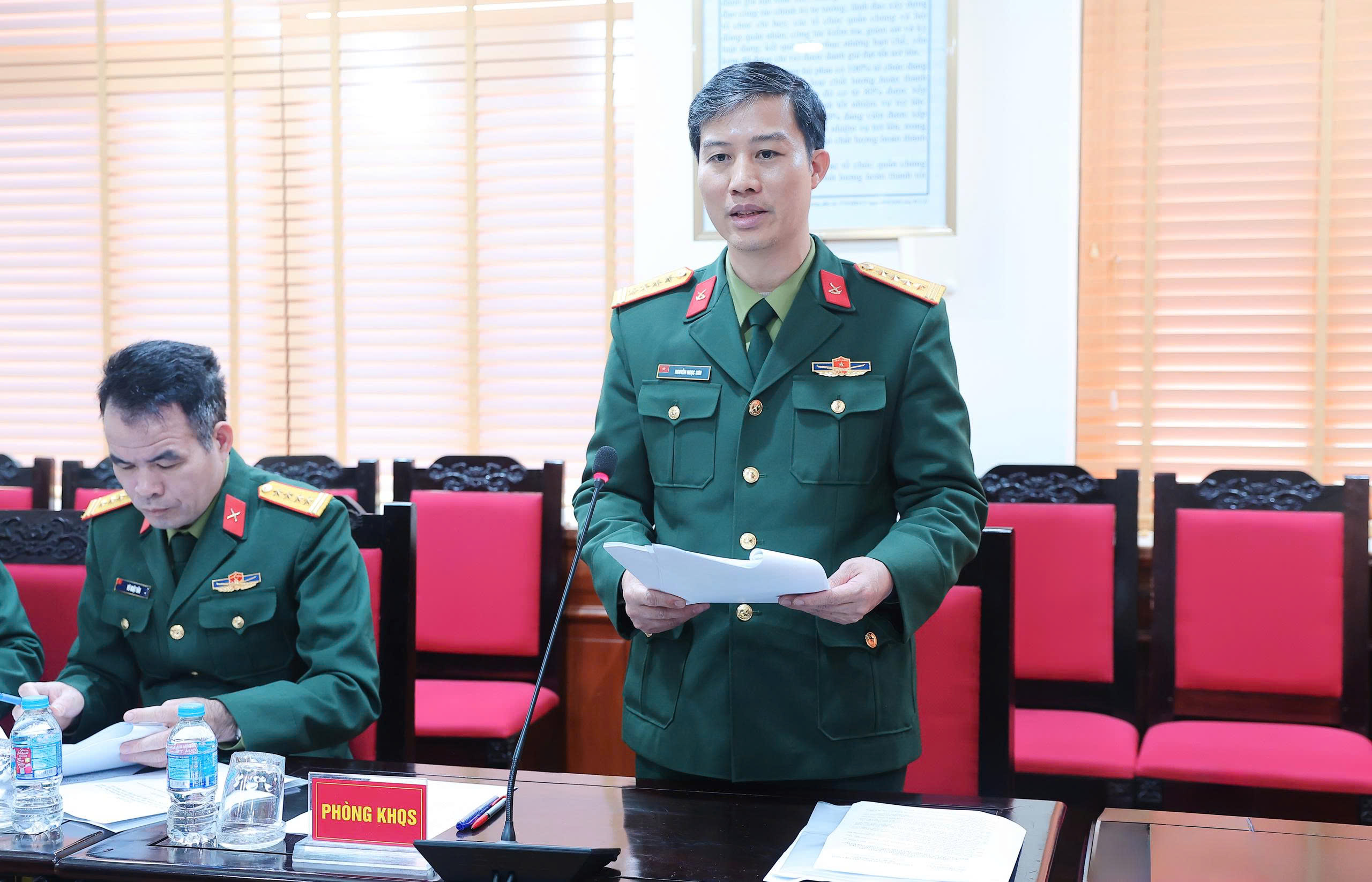 Đại tá, PGS, TS Vũ Hồng Hà, Phó Giám đốc Học viện Hậu cần, Phó Trưởng ban Tổ chức Hội thảo phát biểu.