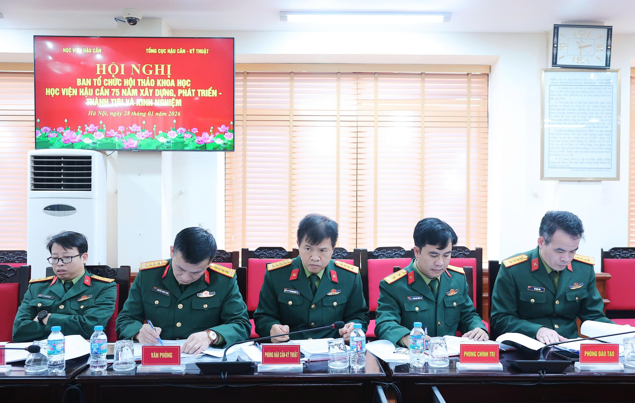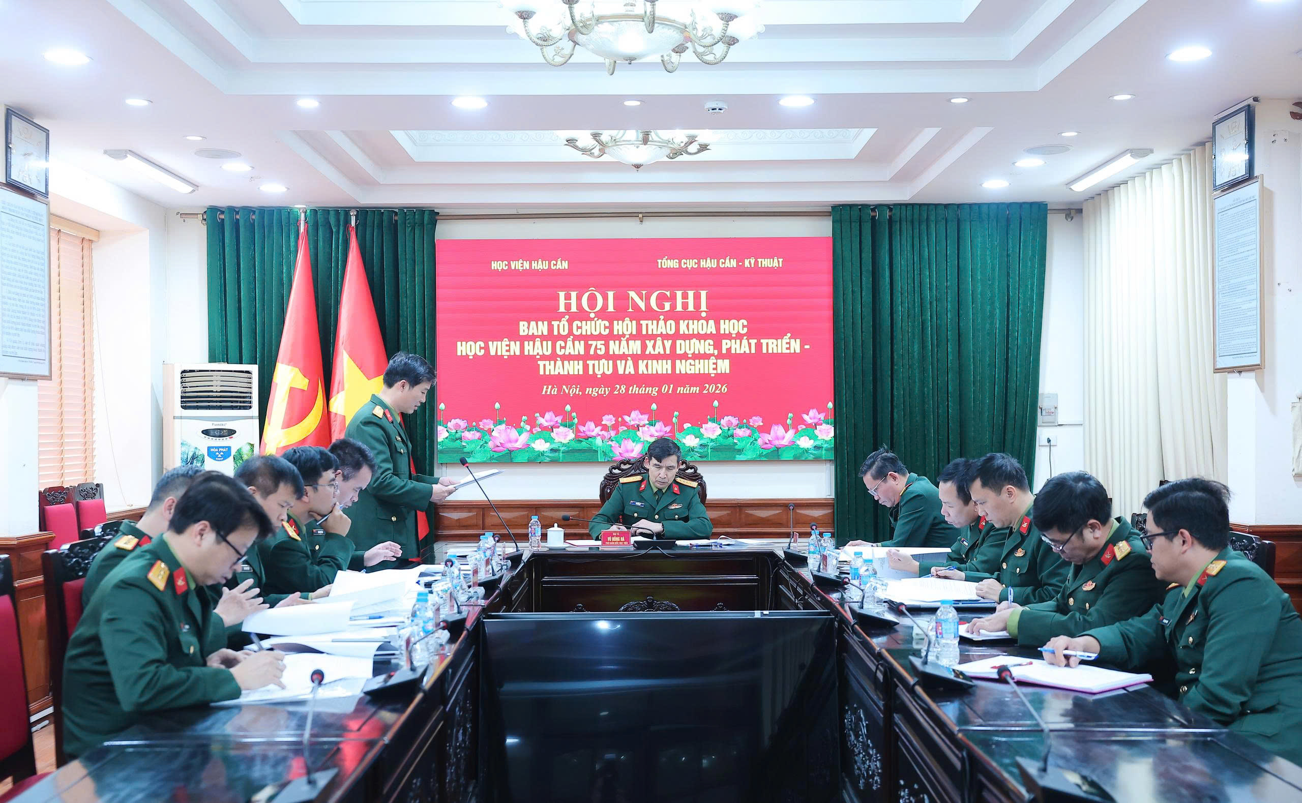 Chiều ngày 28-1, Học viện Hậu cần phối hợp với Tổng cục Hậu cần - Kỹ thuật tổ chức Hội nghị Ban Tổ chức phục vụ Hội thảo khoa học “Học viện Hậu cần 75 năm xây dựng, phát triển - thành tựu và kinh nghiệm”. Đại tá, PGS, TS Vũ Hồng Hà, Phó Giám đốc Học viện Hậu cần, Phó Trưởng ban Tổ chức Hội thảo chủ trì Hội nghị. Tham dự Hội nghị có đại biểu Tổng cục Hậu cần - Kỹ thuật; các đồng chí thành viên Ban Tổ chức Hội thảo; đại biểu chỉ huy các cơ quan chức năng của Học viện Hậu cần.