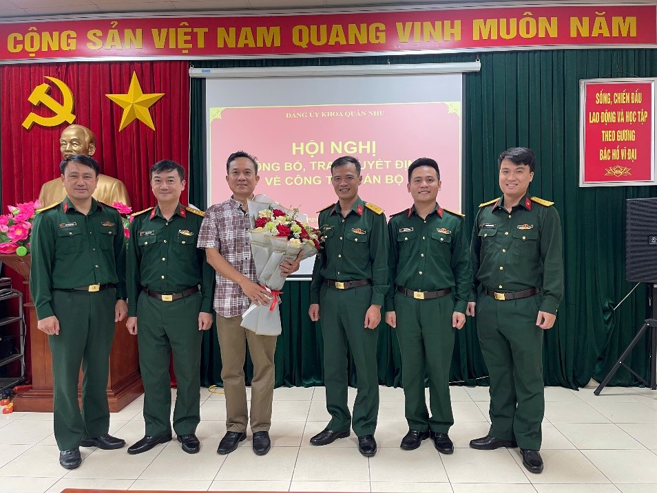 Sáng ngày 02/04 tại Hà Nội, Khoa Quân nhu tổ chức hội nghị công bố, trao quyết định về công tác cán bộ đối với đồng chí Đại tá, PGS, TS Nguyễn Quang Quy, nguyên Chủ nhiệm Bộ môn Thương phẩm. Tham dự hội nghị có đồng chí Đại tá, PGS, TS Nguyễn Thế Phương, Bí thư Đảng uỷ, Phó Chủ nhiệm Khoa chủ trì hội nghị, cùng toàn thể cán bộ, giảng viên, nhân viên trong Khoa.
