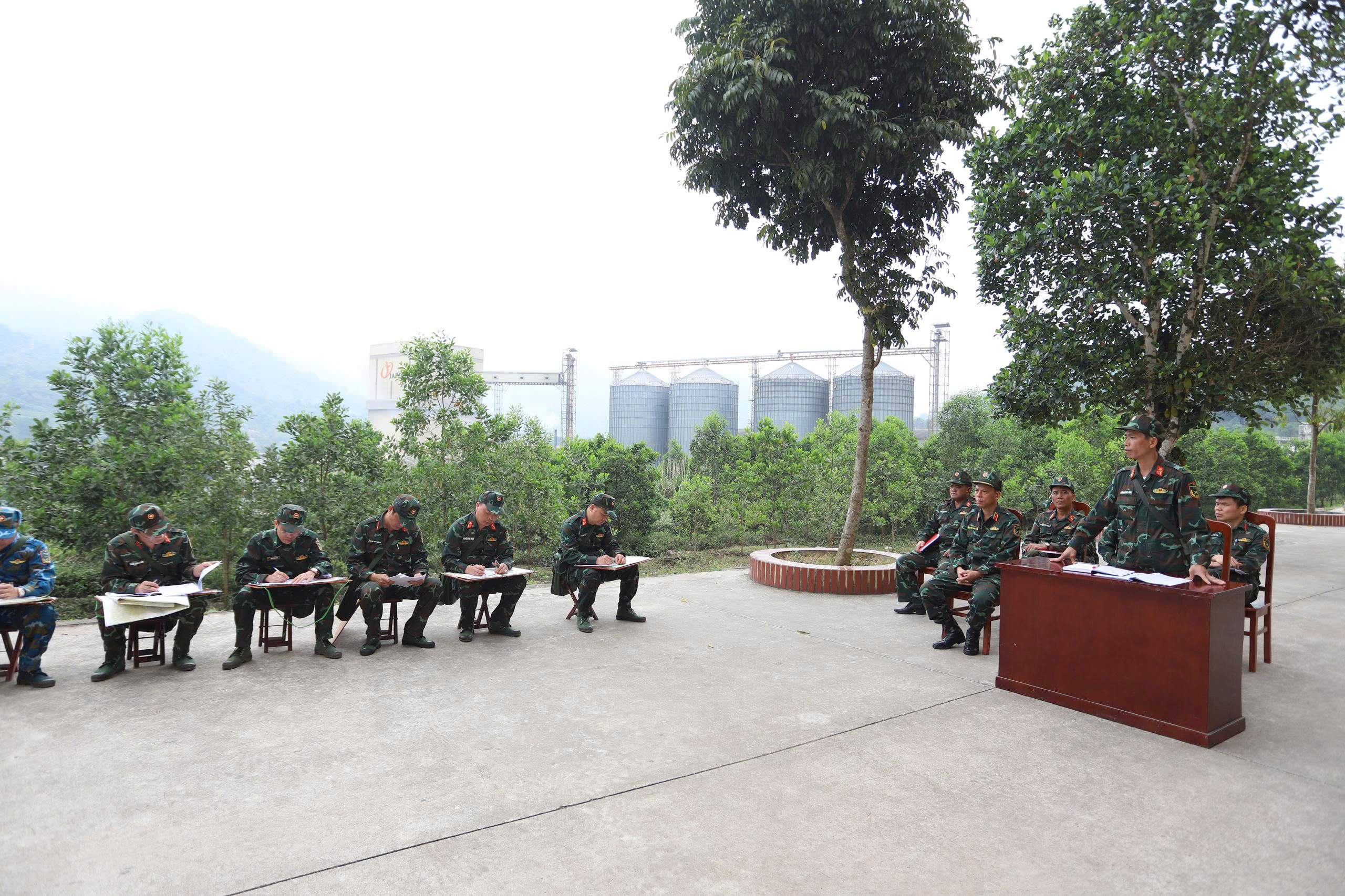 Thiếu tướng Nguyễn Văn Kiên trực tiếp kiểm tra, chỉ đạo nâng cao chất lượng giáo án huấn luyện của giảng viên tại khu vực dã ngoại.