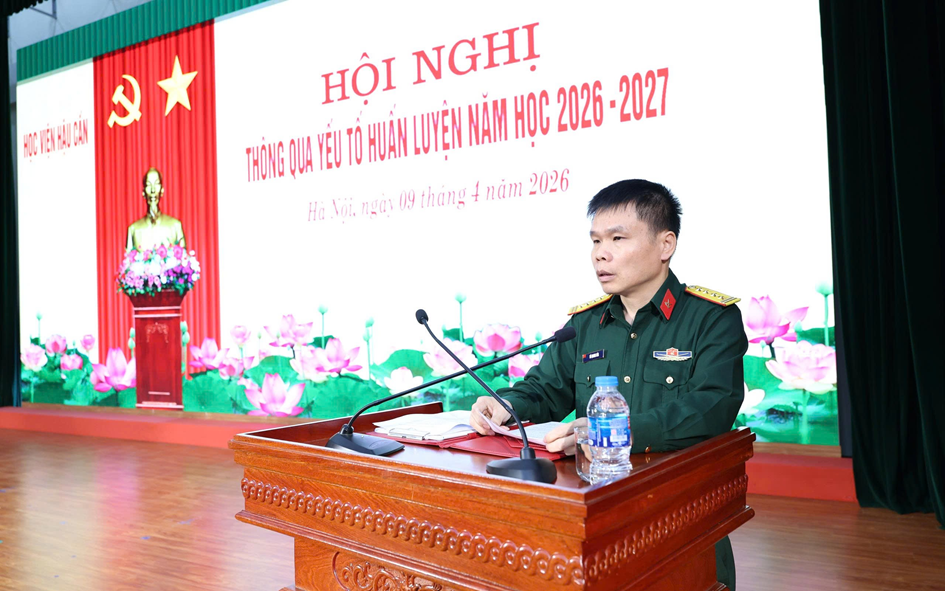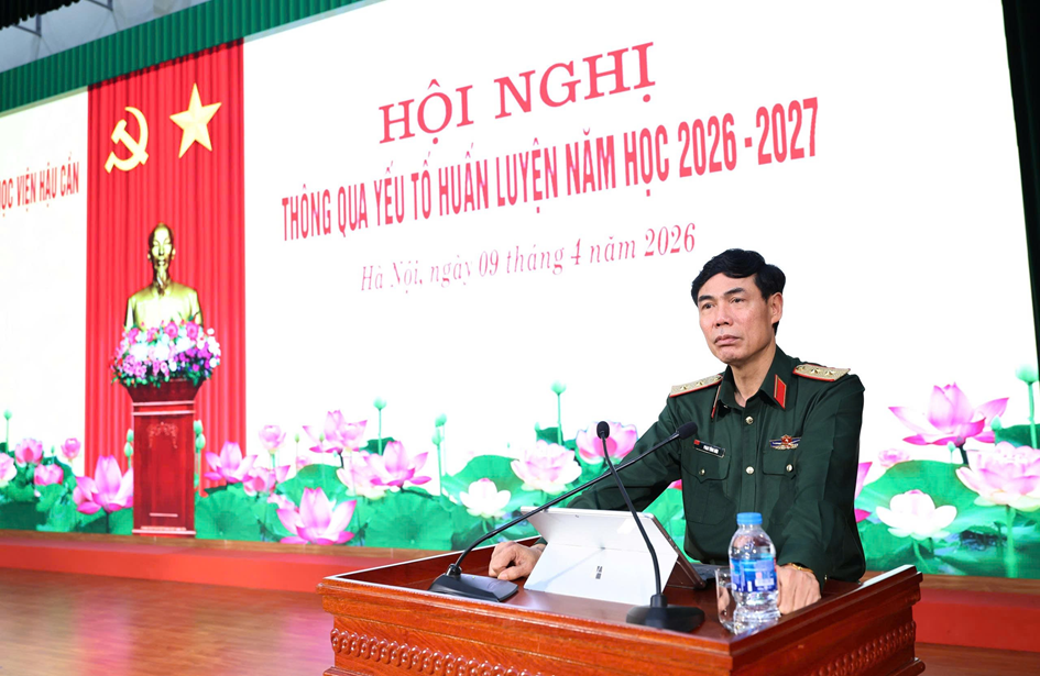 Ngày 09/4/2026, Học viện Hậu cần tổ chức Hội nghị thông qua yếu tố huấn luyện năm học 2026 – 2027. Đồng chí Trung tướng, GS, TS Phan Tùng Sơn, Giám đốc Học viện chủ trì hội nghị. Tham dự có đồng chí Trung tướng Dương Đức Thiện, Bí thư Đảng ủy, Chính ủy Học viện; các đồng chí trong Đảng uỷ, Ban Giám đốc cùng đại biểu các cơ quan, khoa, đơn vị trong toàn Học viện.
