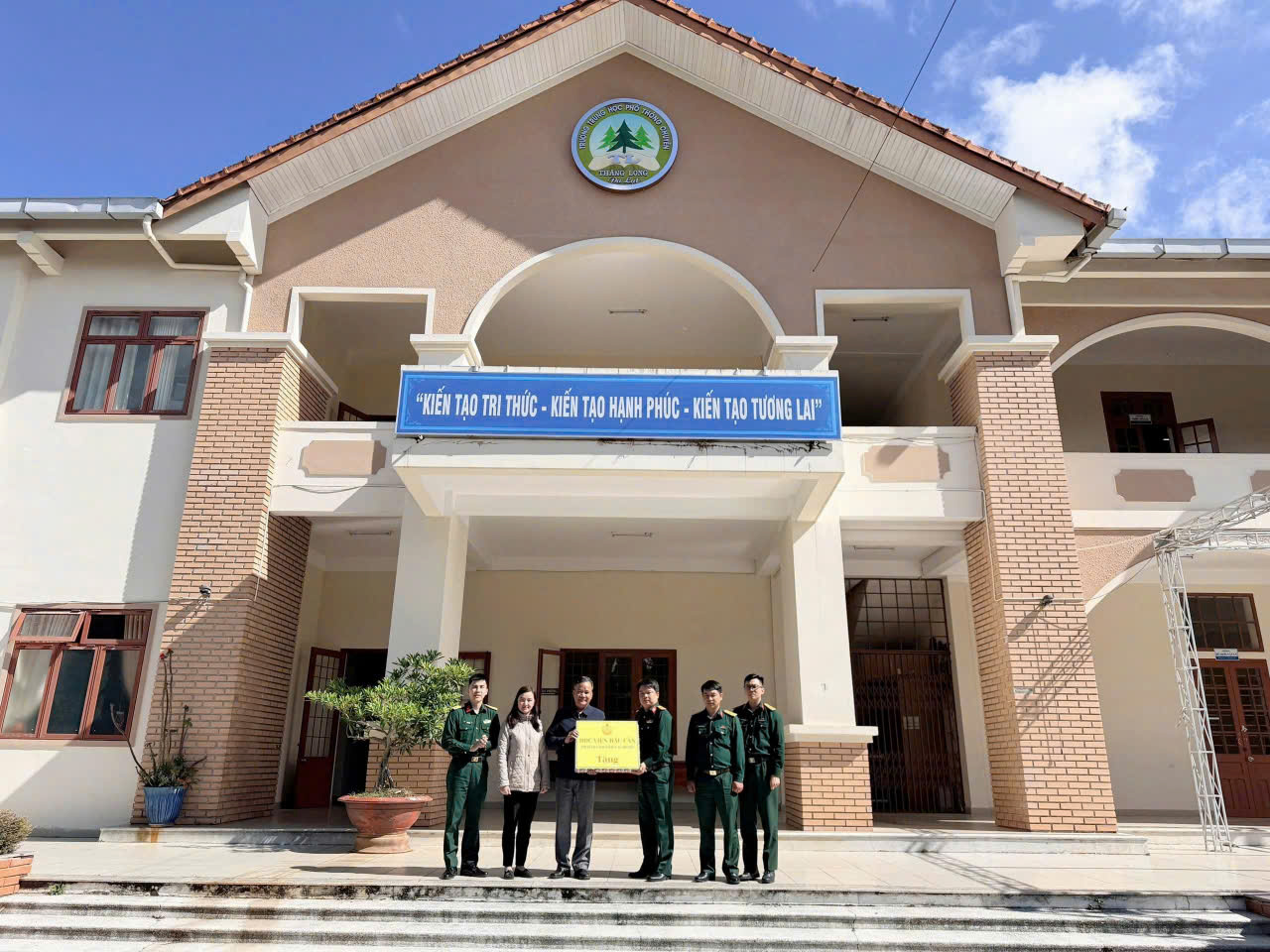 Đại diện Đoàn công tác Học viện Hậu cần tặng quà lưu niệm các trường THPT trên địa bàn tỉnh Lâm Đồng sau chương trình tuyên truyền, tư vấn tuyển sinh quân sự.