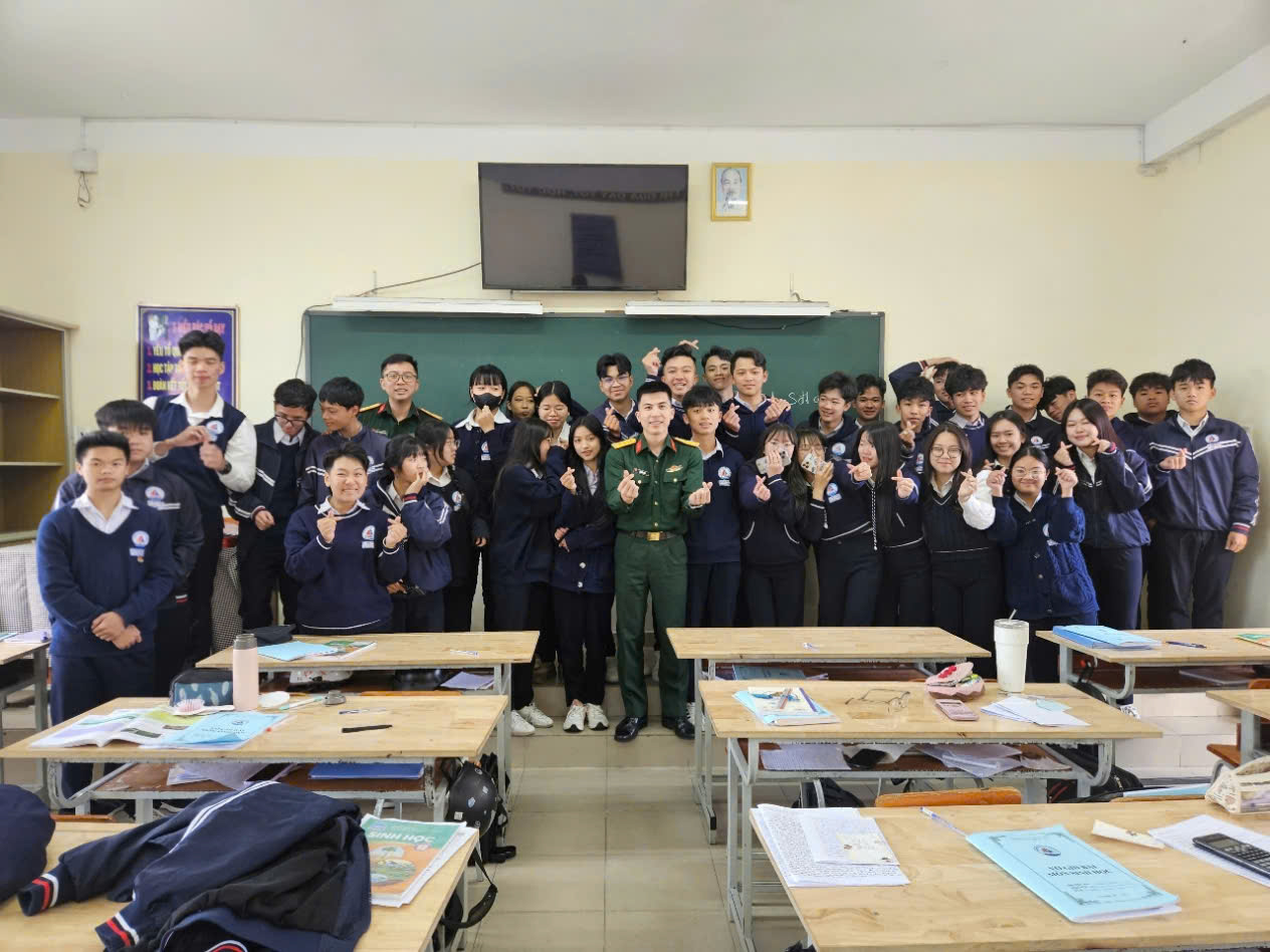 Bên cạnh đó, nhiều nội dung liên quan đến công tác tuyển sinh quân sự năm 2026 cũng được đoàn công tác thông tin, hướng dẫn cụ thể như: tiêu chuẩn chính trị, đạo đức, sức khỏe; điều kiện đăng ký dự tuyển; quy trình sơ tuyển tại Ban Chỉ huy quân sự địa phương; phương thức xét tuyển; chỉ tiêu và các ngành đào tạo của Học viện Hậu cần. Những điểm mới trong quy chế tuyển sinh vào các học viện, nhà trường Quân đội cũng được cập nhật, giúp học sinh nắm rõ hơn về quy trình, thủ tục khi đăng ký dự tuyển vào các trường trong Quân đội.