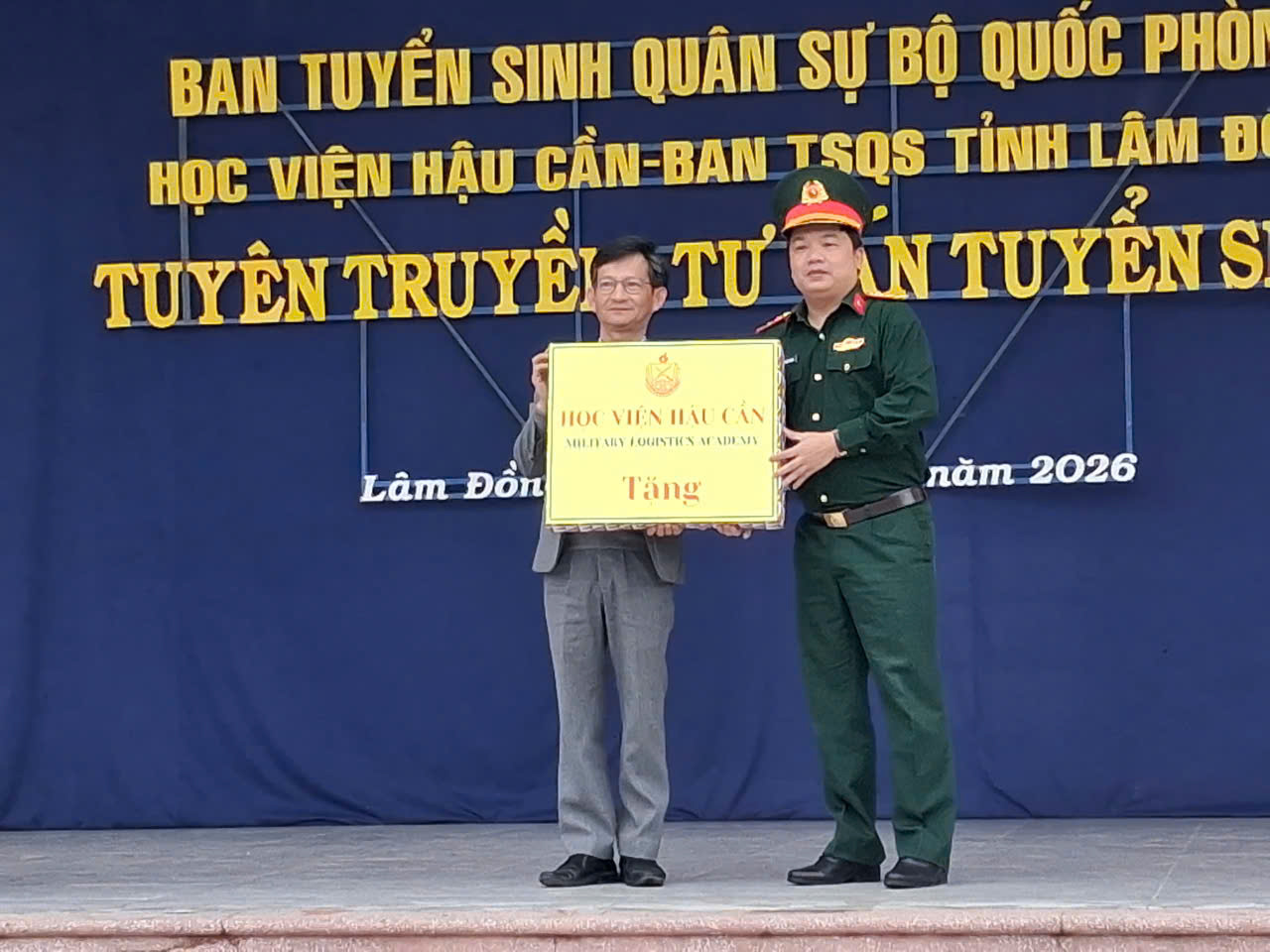Tiếp nối các hoạt động tuyên truyền, hướng nghiệp tuyển sinh quân sự năm 2026 tại các địa phương phía Nam, ngày 10-3, Đoàn công tác của Học viện Hậu cần do Thượng tá, PGS, TS Nguyễn Văn Phong làm trưởng đoàn, cùng các cán bộ, giảng viên của Học viện trực tiếp tham gia tuyên truyền, tư vấn cho học sinh tại một số trường trung học phổ thông trên địa bàn tỉnh Lâm Đồng.