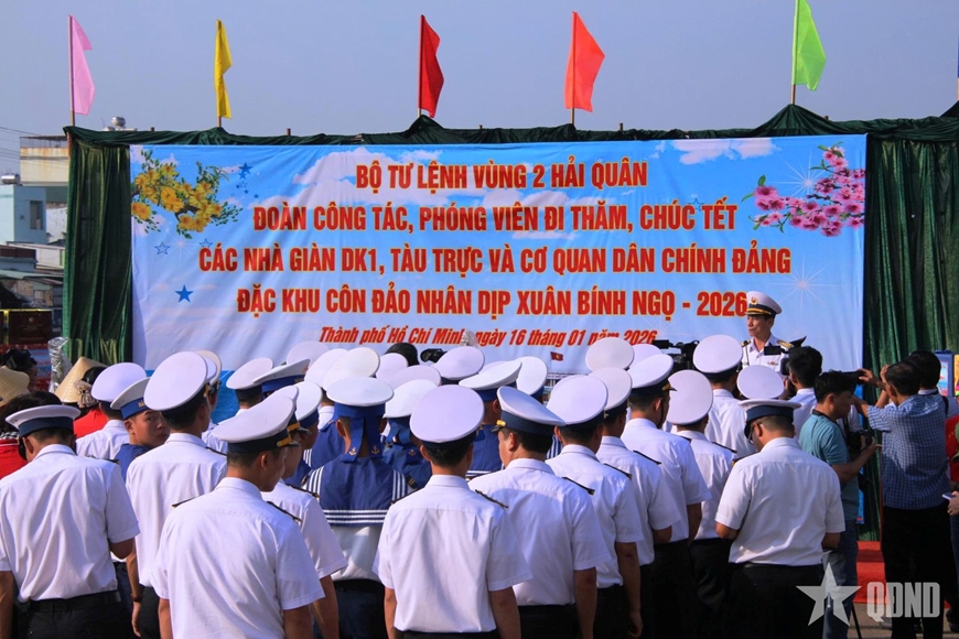 Sáng 16-1, tại Quân cảng Kinh tế - Quốc phòng Trường Sa (phường Phước Thắng, TP Hồ Chí Minh), hai chuyến tàu Trường Sa 01 và Trường Sa 19 của Hải đội 1, Lữ đoàn 125, Bộ tư lệnh Vùng 2 Hải quân đồng loạt rời bến. Trên boong tàu là hơn 100 tấn hàng hóa, quà Tết - những tình cảm thân thương của Đảng, Nhà nước, Quân đội và nhân dân cả nước gửi tới cán bộ, chiến sĩ các nhà giàn DK1, các tàu trực trên thềm lục địa phía Nam, cán bộ, chiến sĩ Trạm radar 590 và Bộ đội Biên phòng đặc khu Côn Đảo.