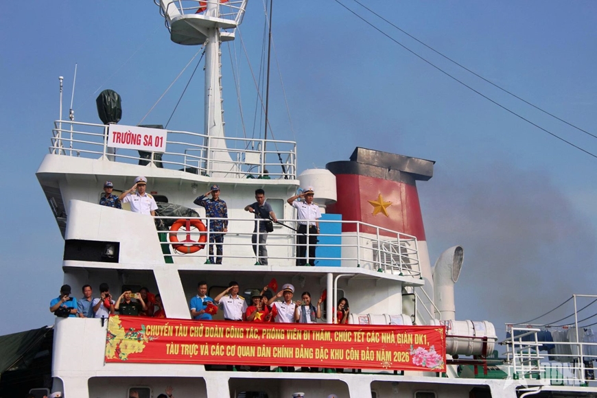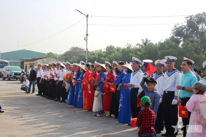 Lễ tiễn tàu diễn ra trong không khí trang nghiêm mà ấm áp. Đông đảo cán bộ, chiến sĩ, đại biểu các cơ quan, phóng viên báo chí và thân nhân của các chiến sĩ có mặt từ rất sớm. Ai cũng hiểu rằng, khoảnh khắc chia tay này không chỉ là một chuyến công tác thường kỳ, mà là cuộc “tiễn xuân” đặc biệt - tiễn mùa xuân ra biển.