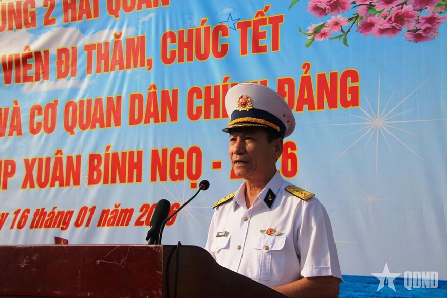 Đại tá Đỗ Hồng Duyên, Phó chính ủy Bộ tư lệnh Vùng 2 Hải quân, chủ trì lễ tiễn tàu. Trong giây phút xúc động trước tình cảm của quân và dân cả nước dành cho những người lính biển, Đại tá Đỗ Hồng Duyên nhấn mạnh: Mỗi dịp Tết đến, xuân về, Bộ tư lệnh Vùng 2 Hải quân lại tổ chức những chuyến tàu mùa xuân, đưa hàng trăm tấn hàng quân nhu, quà Tết đến với cán bộ, chiến sĩ nơi tuyến đầu Tổ quốc.