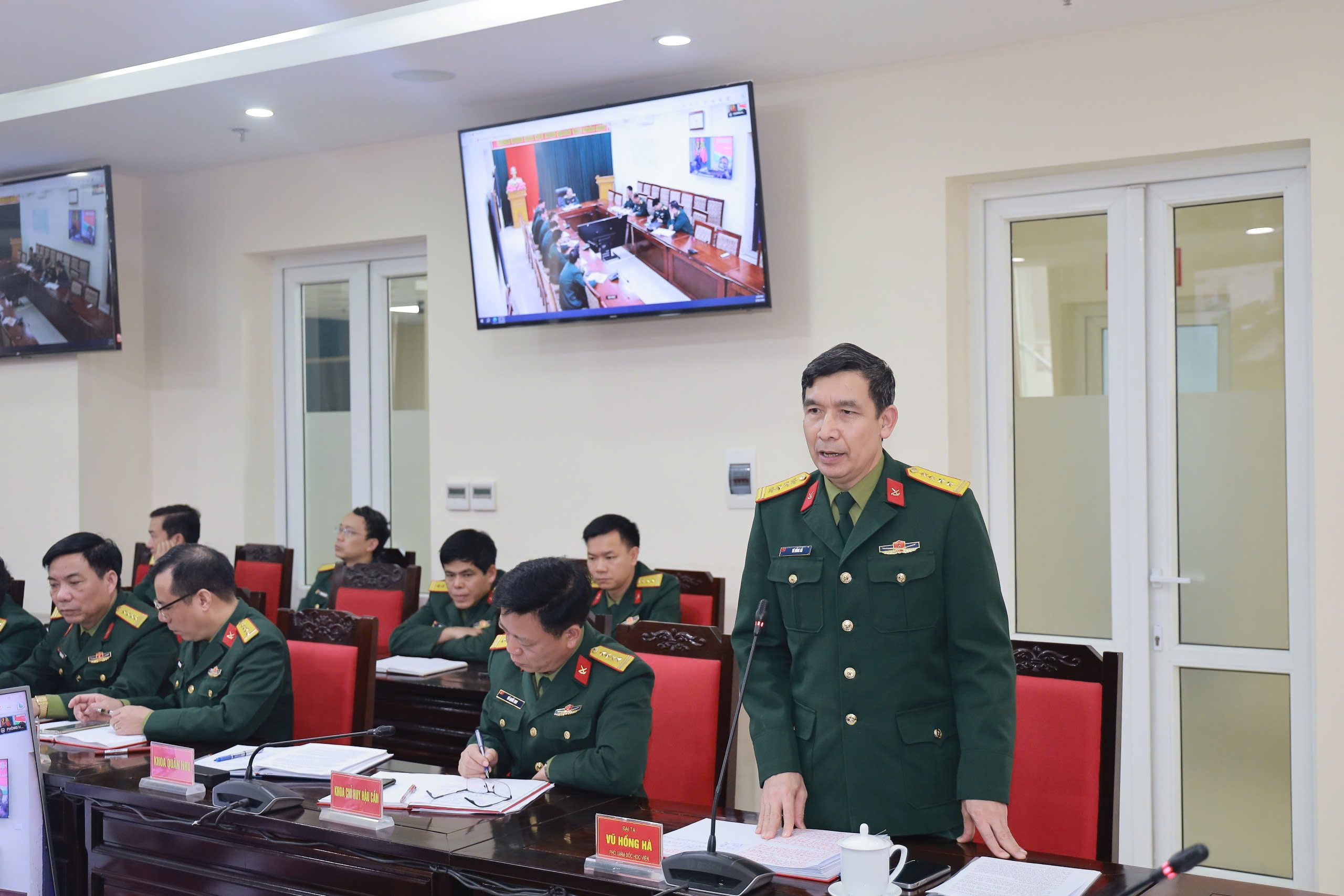 Thiếu tướng, TS Nguyễn Quang Dũng, Phó Giám đốc Học viện chủ trì hội nghị. Dự hội nghị có Đại tá, PGS, TS Vũ Hồng Hà, Phó Giám đốc Học viện; lãnh đạo, chỉ huy các cơ quan, khoa, đơn vị trực thuộc Học viện.