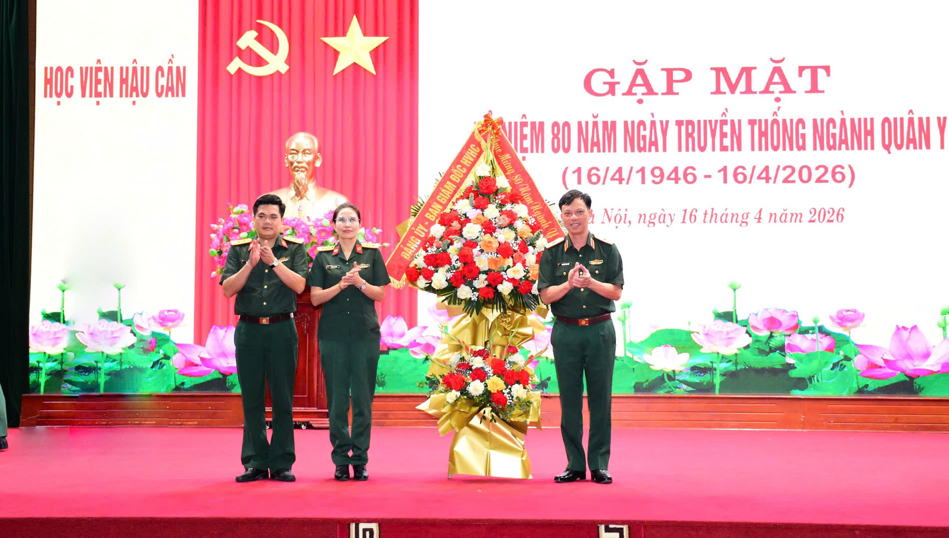 Chiều 16-4, Học viện Hậu cần tổ chức gặp mặt kỷ niệm 80 năm Ngày truyền thống ngành Quân y (16-4-1946 /16-4-2026). Dự gặp mặt kỷ niệm có Thiếu tướng Nguyễn Văn Kiên, Phó Giám đốc Học viện Hậu cần; đại biểu các cơ quan, đơn vị, các thế hệ cán bộ, nhân viên ngành Quân y trong Học viện Hậu cần.